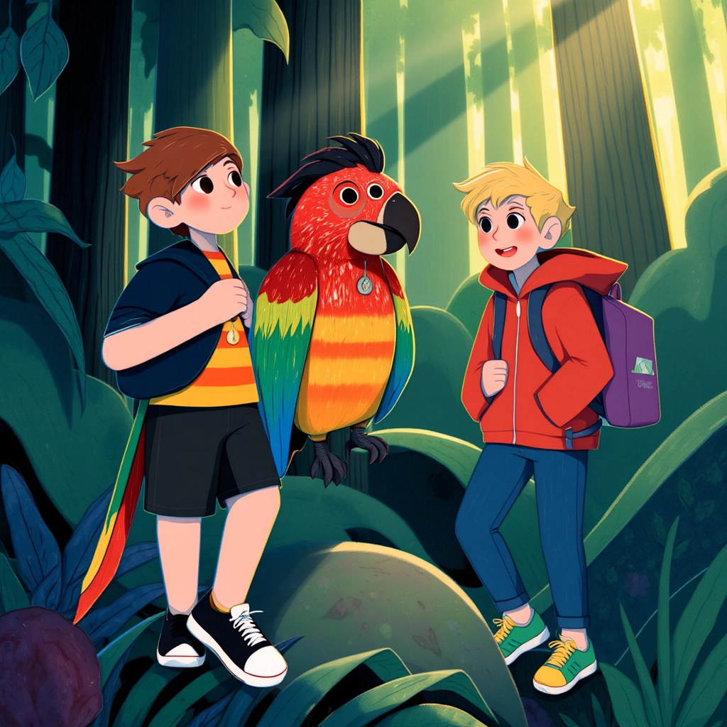 Deep in their backyard, [Emory](HL2RP9VF) and [Ben](GH6JF3VF) discovered a magical portal hidden behind the old oak tree. Holding hands, they stepped through and found themselves in a jungle filled with the chirping of birds and the rustling of leaves.