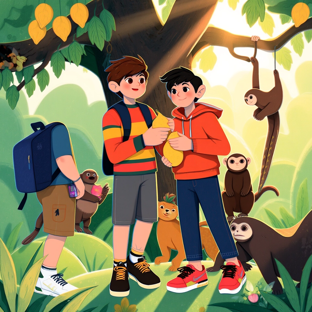 'We should share this with the jungle!' [Emory](HL2RP9VF) said as they gathered some golden fruit. The jungle animals cheered, and the tree glimmered, sharing its magic with the entire forest.