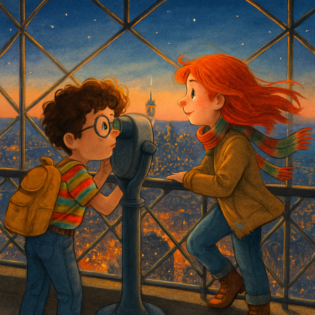 The next stop was the Empire State Building. From the observatory, they could see the whole city stretched out like a glittering map. 'We’re so high up!' [Emory](3M36VV69) said, peering through the binoculars.