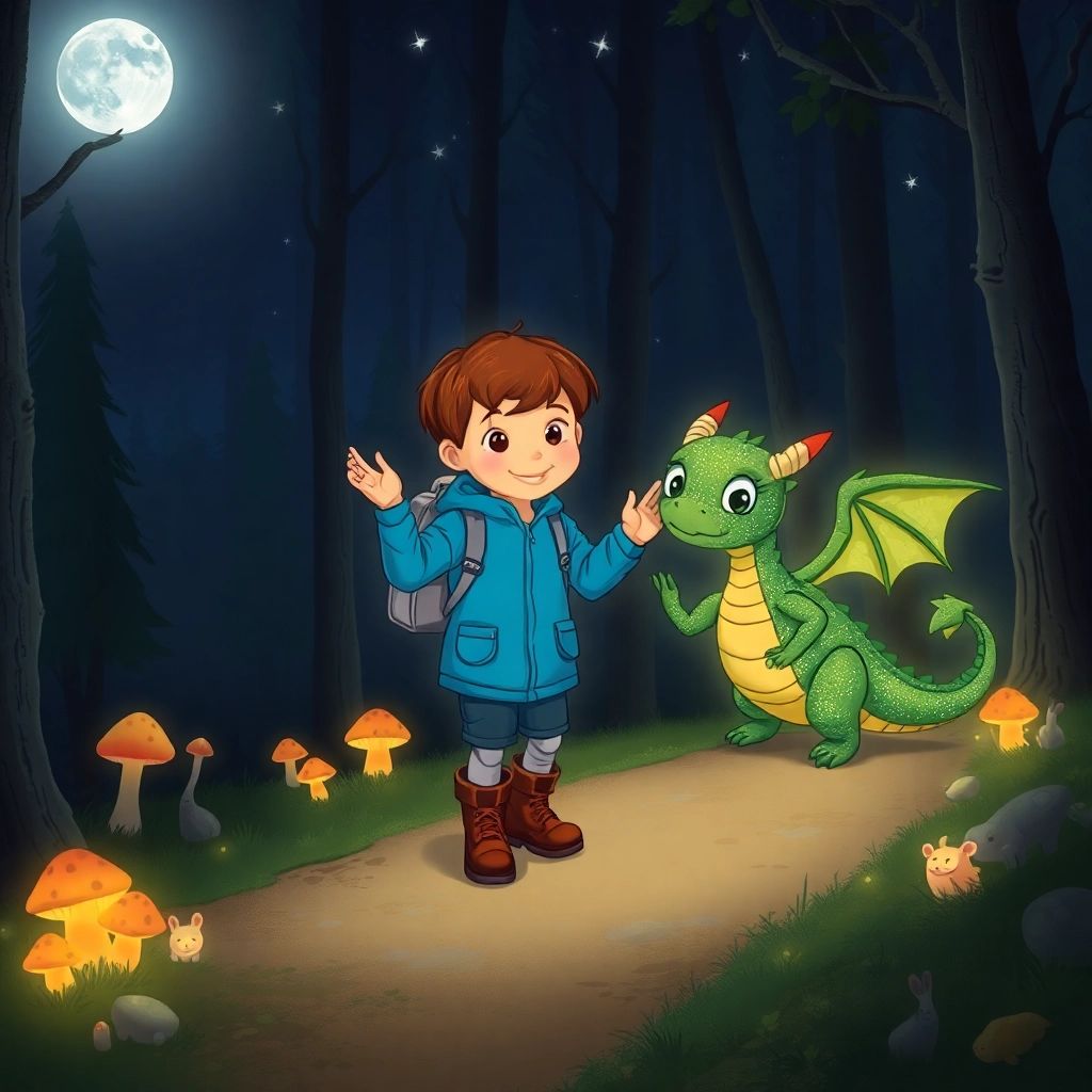 Deep in the heart of the Willowbright Forest, [Emory](RMJS3KH4) was on another exciting adventure. With his trusty backpack, sturdy boots, and endless curiosity, he explored the mossy trails and tree-lined paths. Suddenly, he heard a faint sniffle nearby. Following the sound, [Emory](RMJS3KH4) discovered a young dragon sitting alone, its tiny wings drooping in sadness.