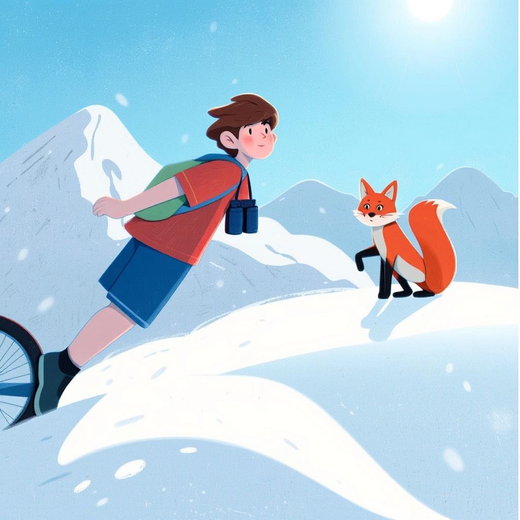 Soon, [Emory](LKHLQJZS) reached the Snowy Peaks, home to his friend, [Ruby](3STPFMVN) the red fox. [Ruby](3STPFMVN) was thrilled to see [Emory](LKHLQJZS) pop out of the sky like a shooting star. 'Hop on, [Ruby](3STPFMVN)!' called [Emory](LKHLQJZS).