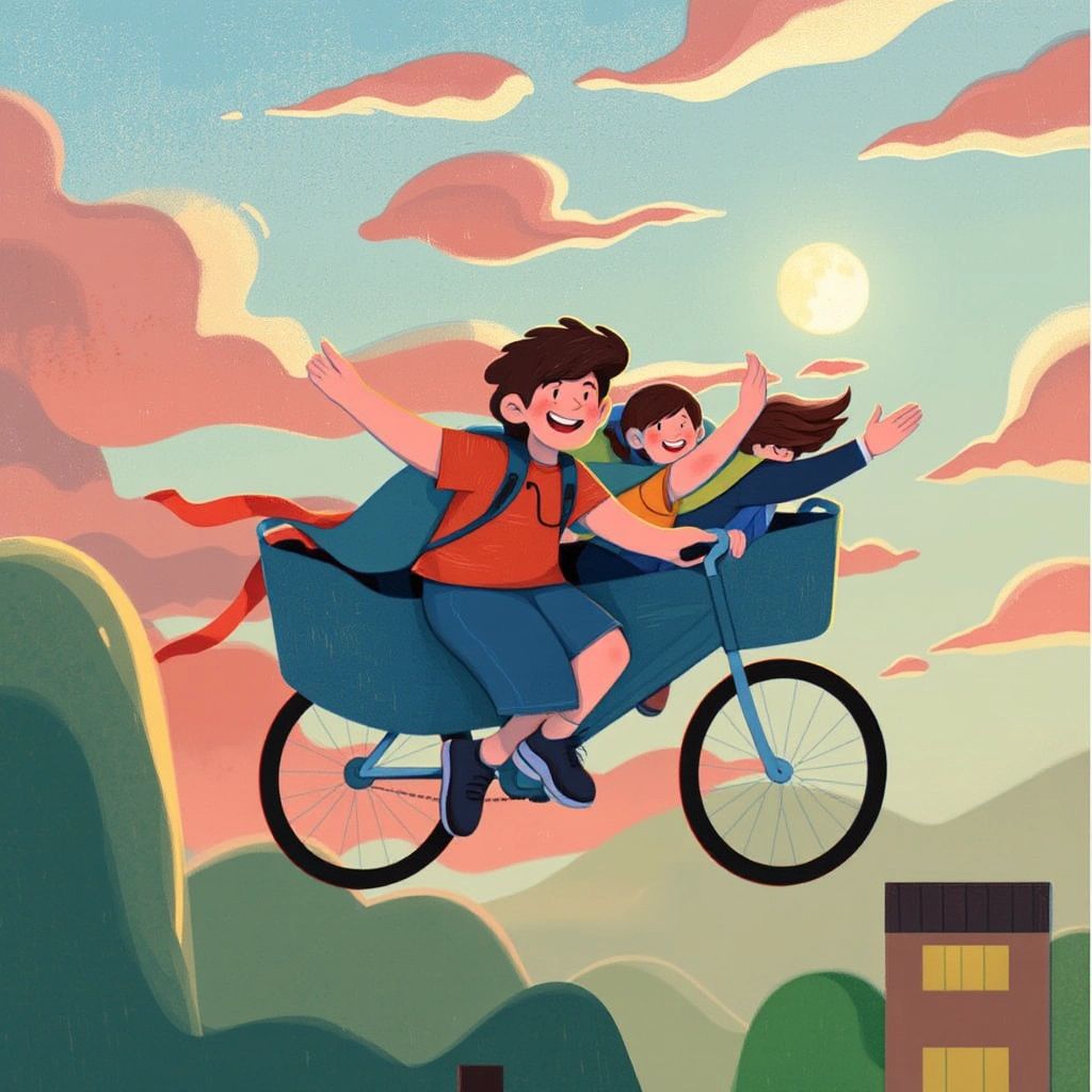 Back home, [Emory](LKHLQJZS) parked his flying bicycle in the garage, already dreaming of the next adventure. His heart was full, and his mind raced with possibilities, knowing the world was now his to explore.