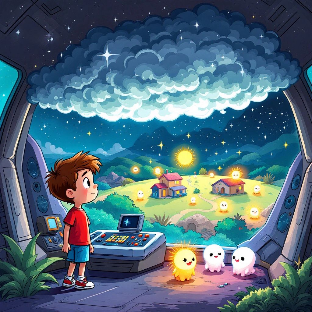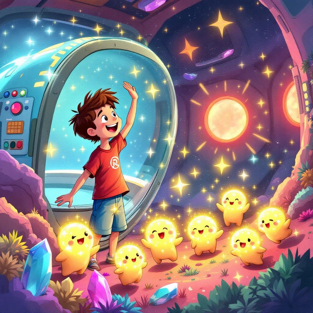 Once landed, [Emory](LKHLQJZS) was greeted by the planet's inhabitants—tiny creatures called [Lumins](CW2GKCTL), who sparkled like little suns.