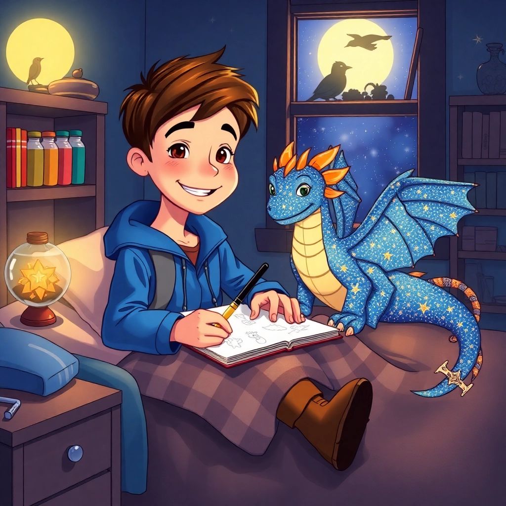 [Emory](RMJS3KH4)’s excitement grew. With each stroke of the paintbrush, more creations came to life. He painted a friendly dragon with scales that shimmered blue and gold. The dragon, named [Sparklewing](4GMBYBH4), gently lowered its head for [Emory](RMJS3KH4) to pat. "Welcome to the adventure!" [Emory](RMJS3KH4) said, grinning.