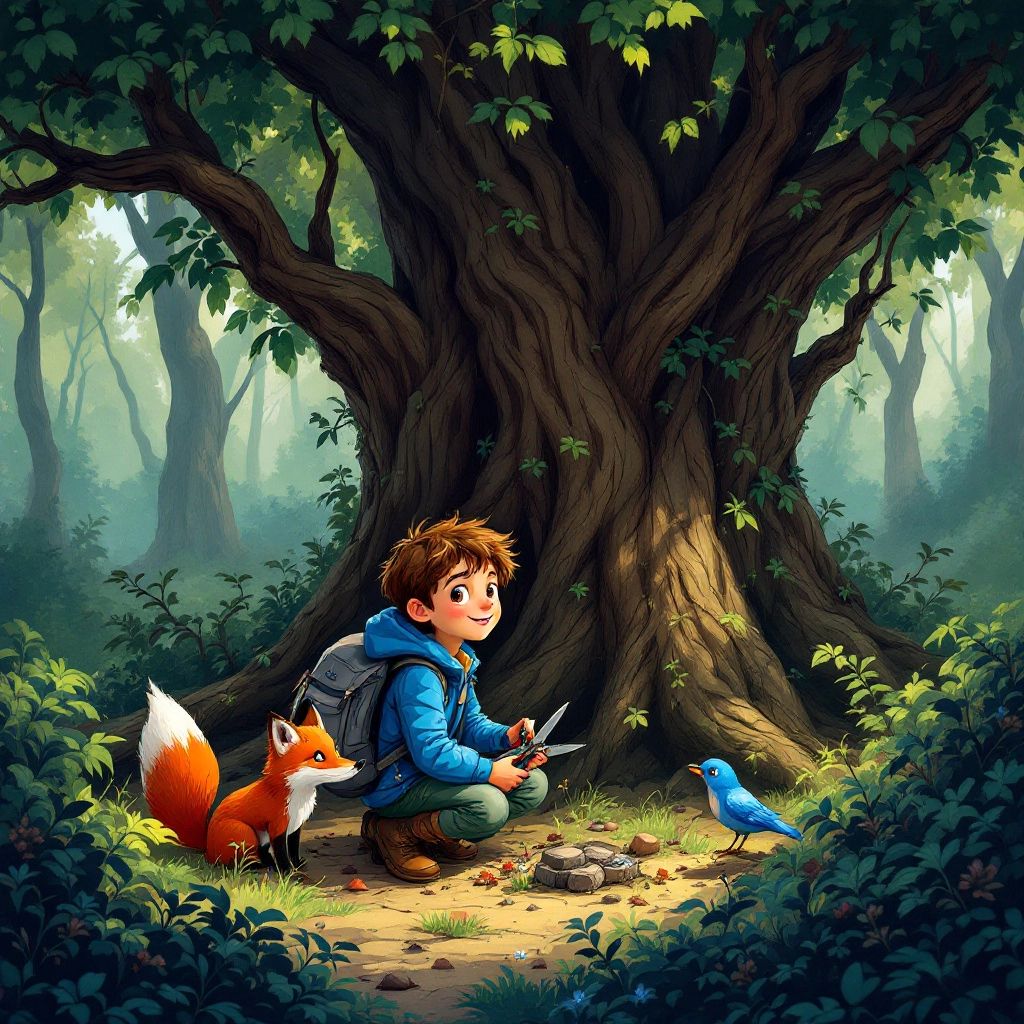 Deeper into Glimmerwood Forest, [Emory](RMJS3KH4) and the fox met Melody, a singing bluebird. Her feathers sparkled like sapphires. She was worried as her favorite tree was surrounded by prickly brambles. "We can help!" said [Emory](RMJS3KH4), pulling out his small hand-sized garden shears. Carefully, he snipped away the thorny vines. "Thank you!" Melody chirped. "If you need me, just sing!" And with a flutter of her dazzling wings, she flew off to her tree.