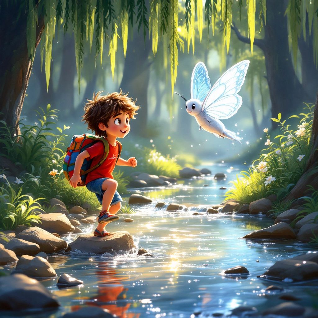 [Zephyr](XCTDGZM5) led [Emory](LKHLQJZS) to a sparkling stream that sang a delightful, bubbling tune. They hopped from rock to rock, their reflection shimmering in the crystal-clear water. Each step brought them closer to unraveling the mystery.