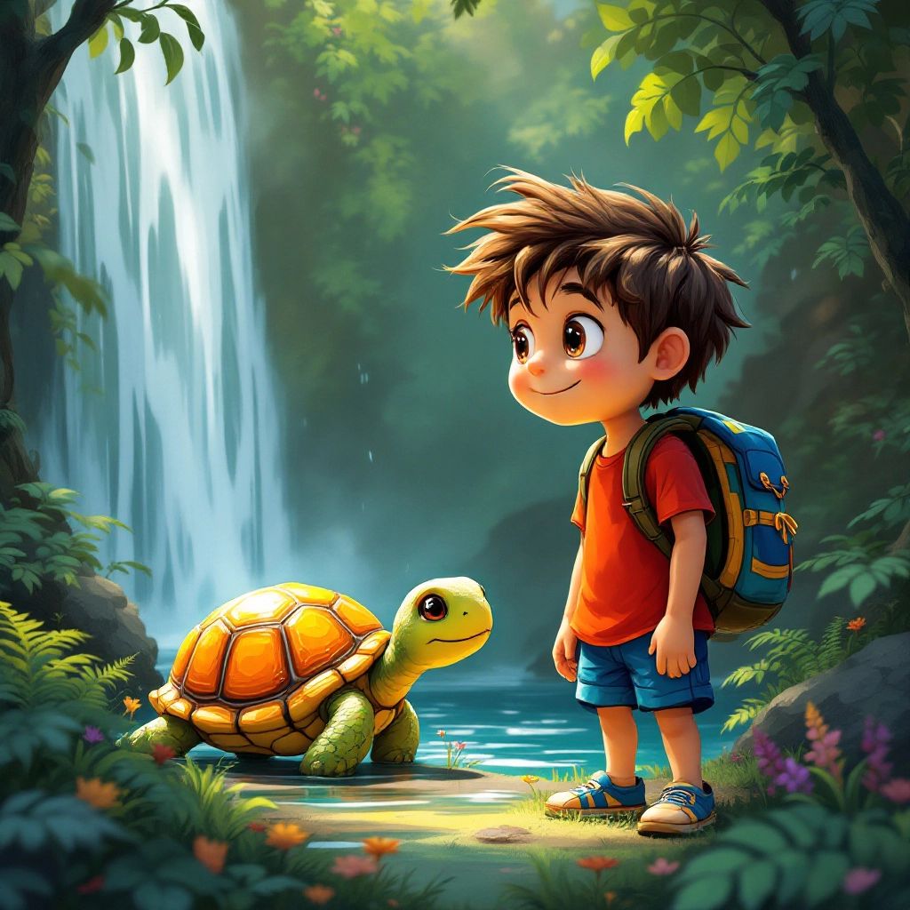 Just beyond the falls, [Emory](LKHLQJZS) encountered [Eldora](DXFPZYNC), a wise old turtle with a shell that flickered like a sunset. 'The rainbow's end lies where the sun kisses the lake,' she explained with a sage smile. 'Go on, young adventurer.'