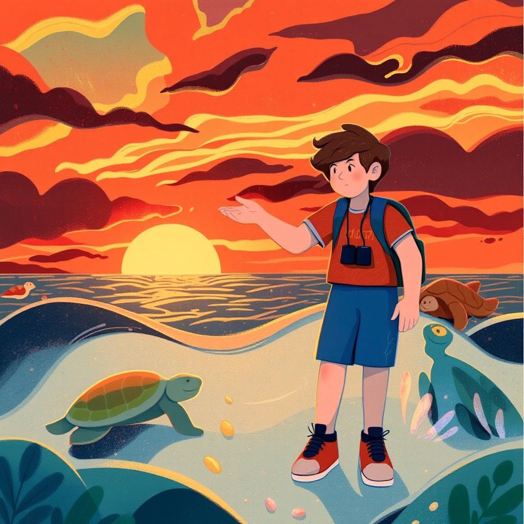 As the sun dipped below the horizon, painting the sky in hues of orange and pink, Tilly gathered the turtles one last time. She gave [Emory](LKHLQJZS) a seashell that captured the sound of the ocean's song within, a token of their friendship and adventures.