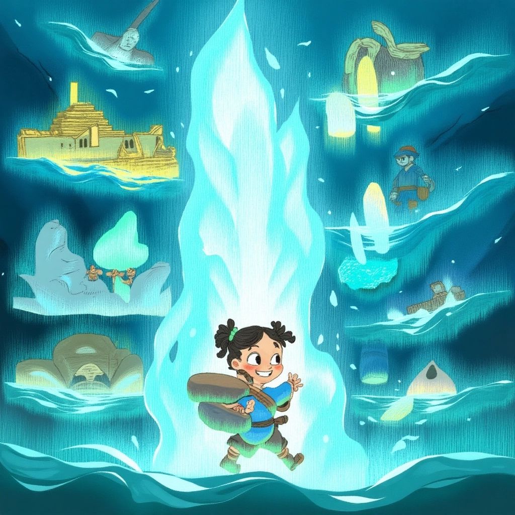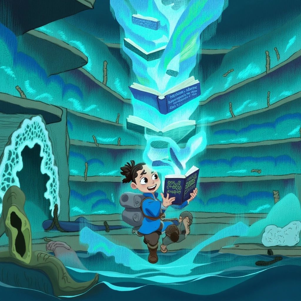 As [Emory](RMJS3KH4) explored, he discovered an enormous library, where glowing books floated gently in the water. Each book hummed with a faint tune. 'The History of Atlantis' one book said. [Emory](RMJS3KH4) opened it to see pictures and words flowing out, telling him the story of a city powered by mysterious crystals.