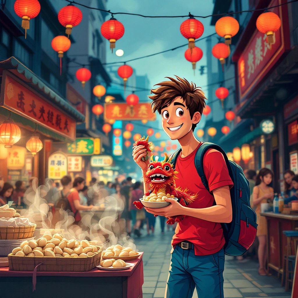 Back in the city, [Emory](LKHLQJZS) explored bustling Chinatown, where red lanterns swayed in the breeze. He savored delicious dumplings and bought a red dragon toy as a souvenir.