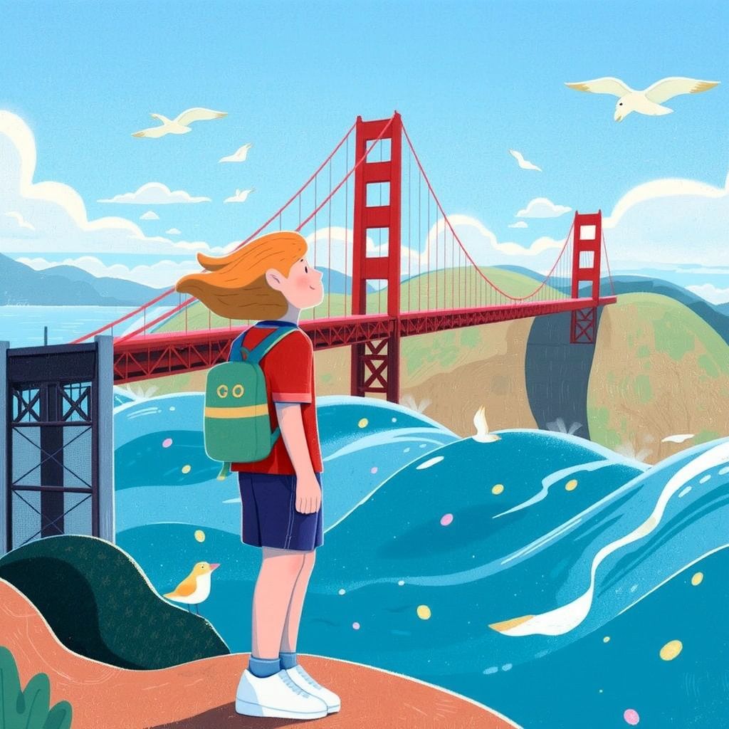 [Emory](LKHLQJZS)'s first stop was the Golden Gate Bridge. It was more magnificent than he imagined. He stood in awe, capturing the moment with his camera.