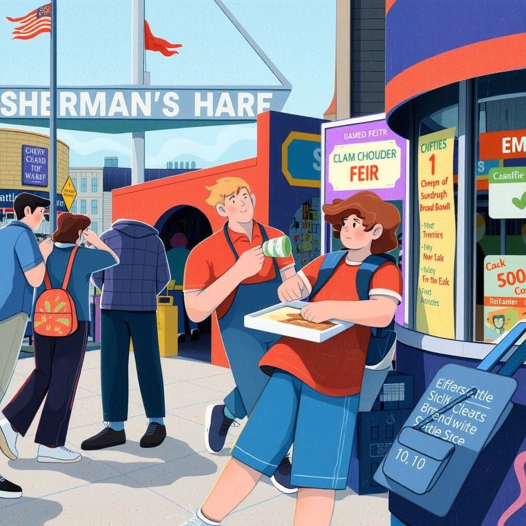 Hungry from all the excitement, [Emory](LKHLQJZS) went to Fisherman's Wharf. The smell of fresh seafood filled the air, and [Emory](LKHLQJZS) couldn't wait to try some clam chowder.