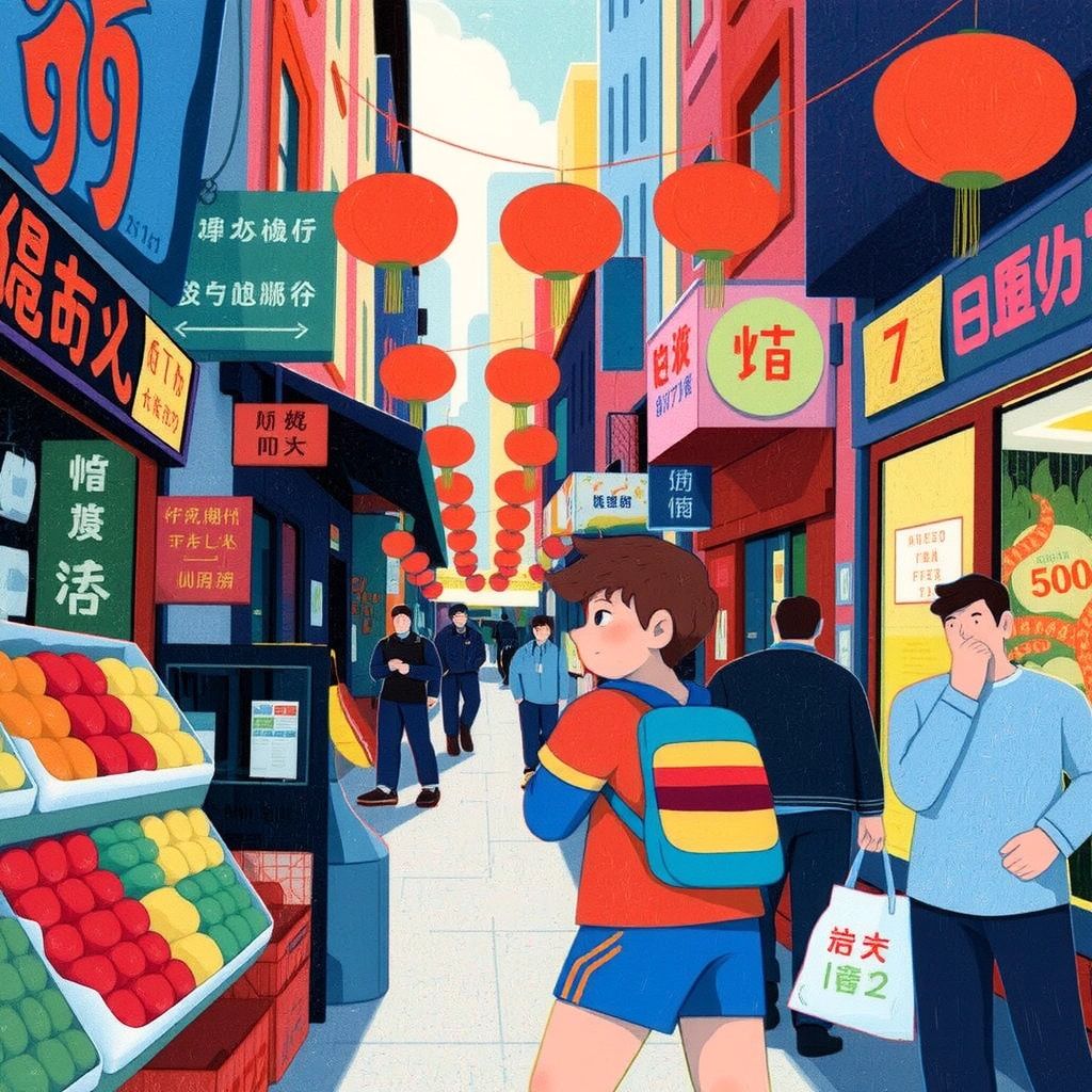 Back on the mainland, [Emory](LKHLQJZS) enjoyed wandering around Chinatown. The bustling markets and colorful lanterns captured his imagination.