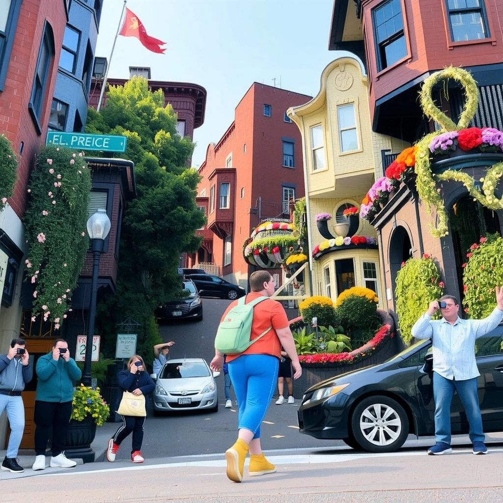 [Emory](LKHLQJZS)'s final stop was Lombard Street, famous for its eight hairpin turns. He marveled at the twisting road lined with blooming flowers and lovely houses.
