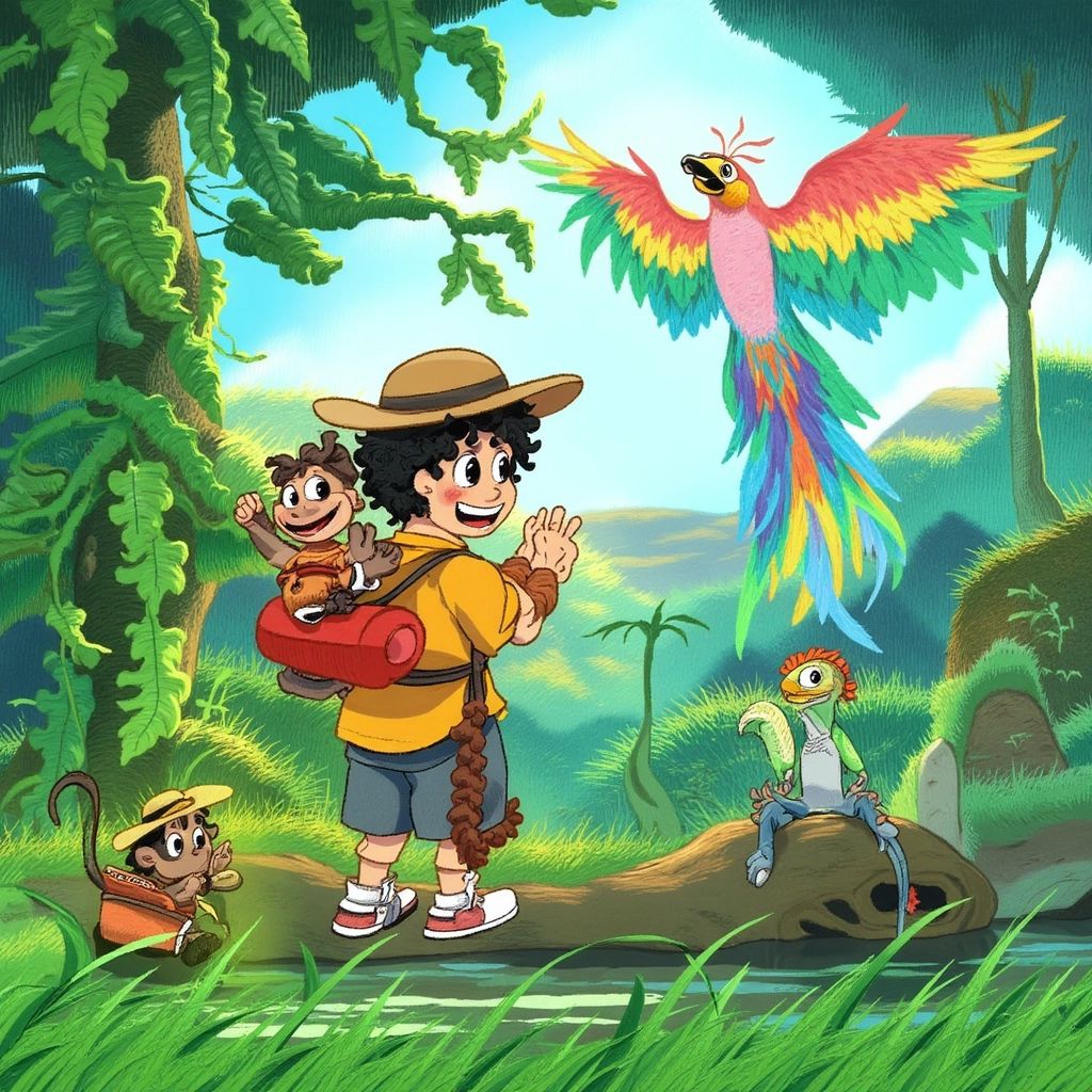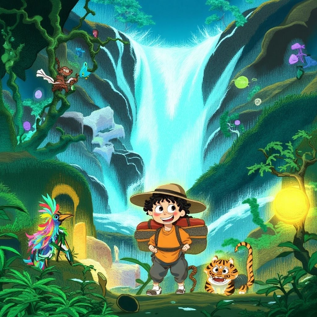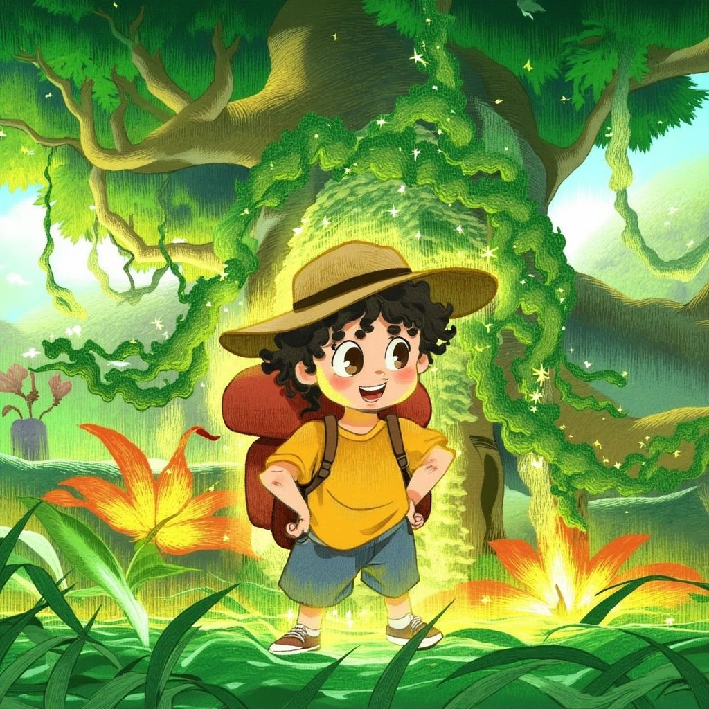One sunny morning, [Emory](2FY9WSSC), a curious 5-year-old boy, packed his little red backpack, put on his safari hat, and decided to explore the jungle behind his house. He had heard there was magic in the jungle, and today, he was going to find it!