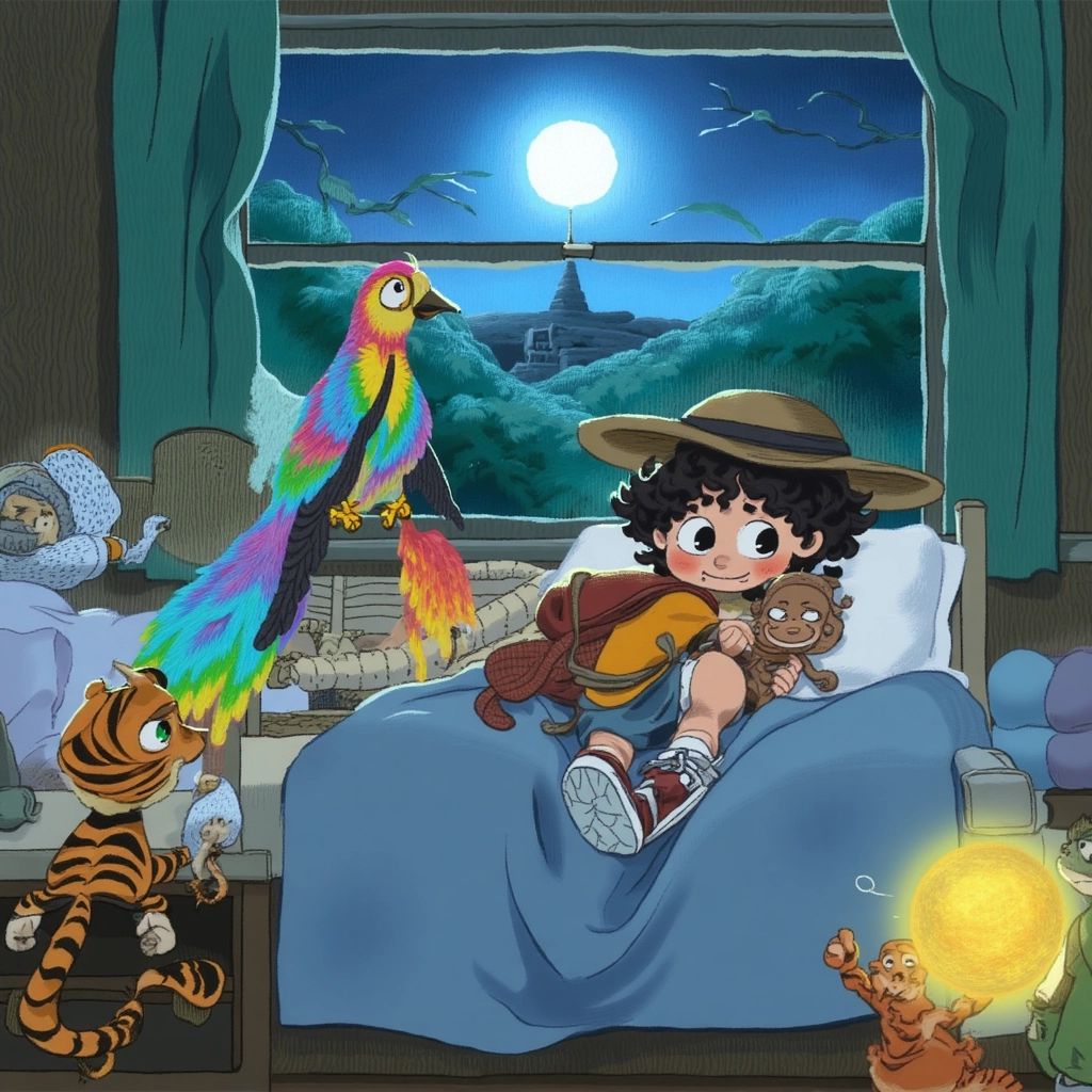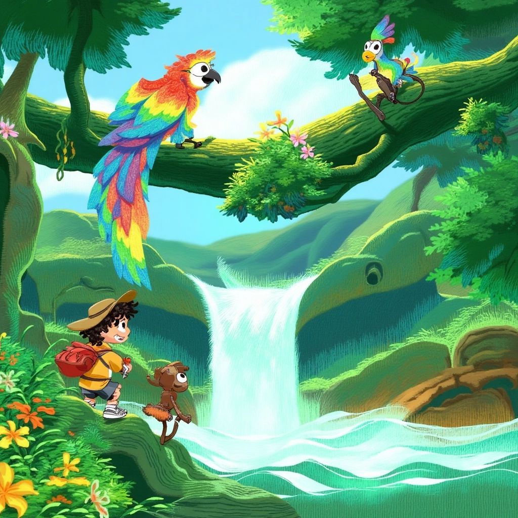 Back home, [Emory](2FY9WSSC) told his mom all about the Magic Waterfall, [Jojo](GS95PTDZ), [Polly](6RBJRZQQ), and [Tiko](SWB6LP4Q). She smiled and listened, and as [Emory](2FY9WSSC) drifted off to sleep, he dreamed of the adventures that awaited him in the jungle.