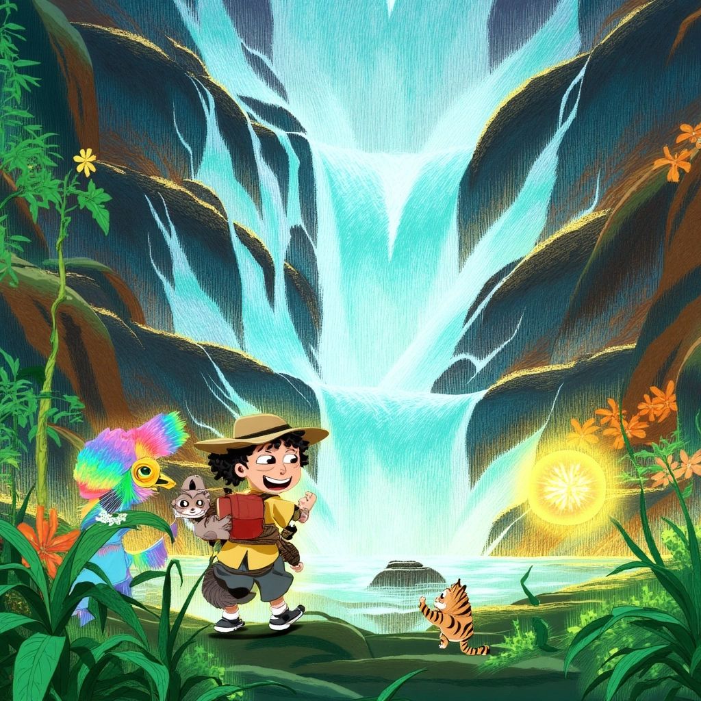 As [Emory](2FY9WSSC) opened his eyes, he felt a warm breeze. Suddenly, the Waterfall sparkled brighter, and he could hear laughter and play all around him. "Your wish came true," said [Polly](6RBJRZQQ). "The jungle will always be here for more adventures!"