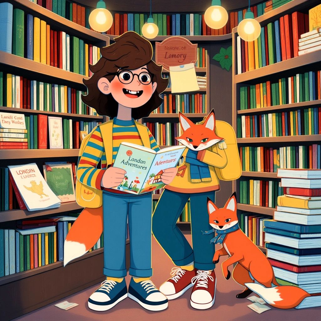 As the day ended, [Finn](BZK3VL32) led [Emory](3M36VV69) to a cozy bookshop to find a special souvenir. The shelves were filled with amazing books about London!
