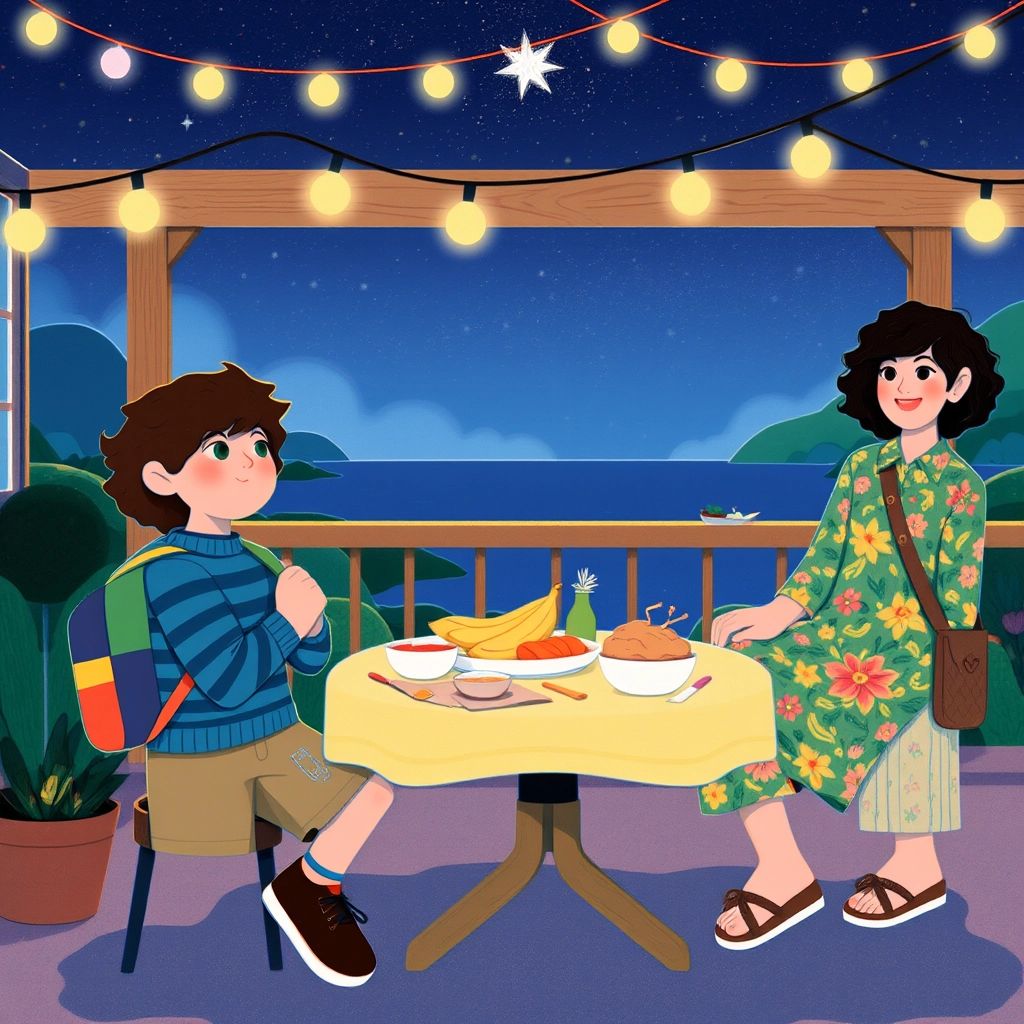 Before the day ended, [Mimi](DCFZY4FK) surprised [Emory](KLX2WFQS) with a feast of local island dishes: bolo do caco bread with garlic butter, espada fish with bananas, and sweet maracuja pudding. 'Everything is delicious here!' [Emory](KLX2WFQS) exclaimed, smiling brightly.