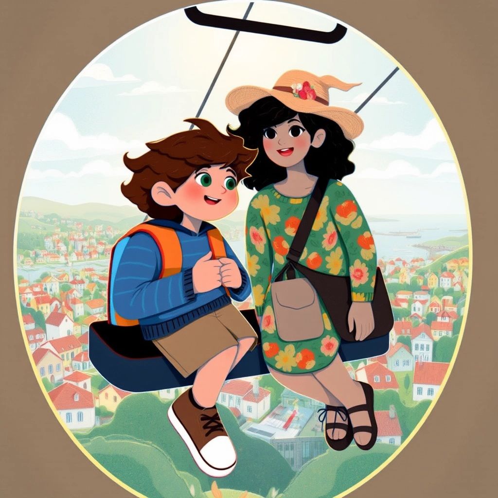After the market, [Mimi](DCFZY4FK) led [Emory](KLX2WFQS) to a cable car. Together, they glided high above the city of Funchal. 'Look at those red rooftops and grapevine terraces!' [Mimi](DCFZY4FK) said. [Emory](KLX2WFQS) marveled at the patchwork of gardens, houses, and ocean views.