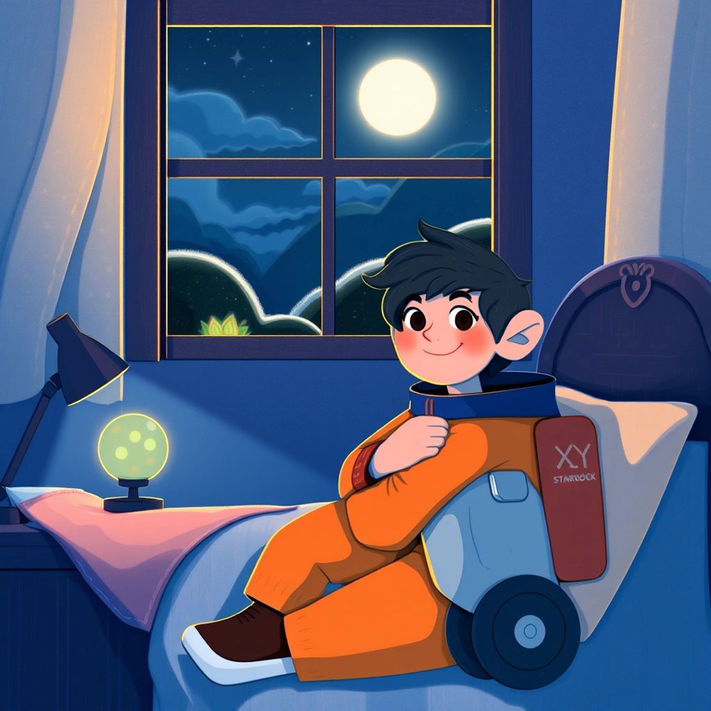 [Emory](HL2RP9VF) was a curious little astronaut. Every night, [Emory](HL2RP9VF) gazed at the moon through a telescope and wondered, 'What’s it like up there?' One morning, something extraordinary happened—a special invitation to visit the Moon appeared on his desk!