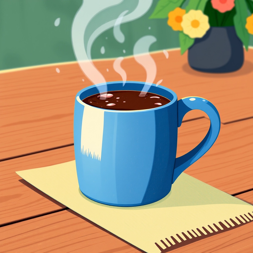 On the table, there’s a cup. In English, we call it a 'cup'.