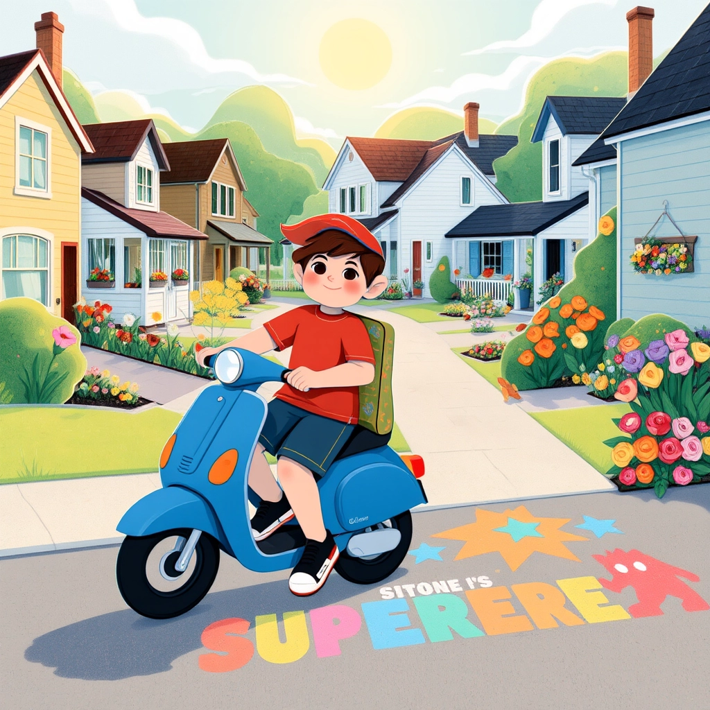 In a small, cozy town, there lived a boy named [Evan Lama](XF659SP9). He loved drawing superheroes and zooming around on his scooter, faster than the wind!