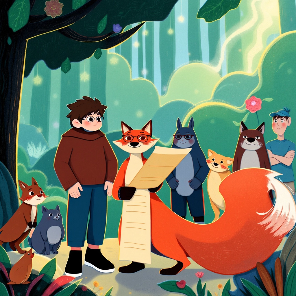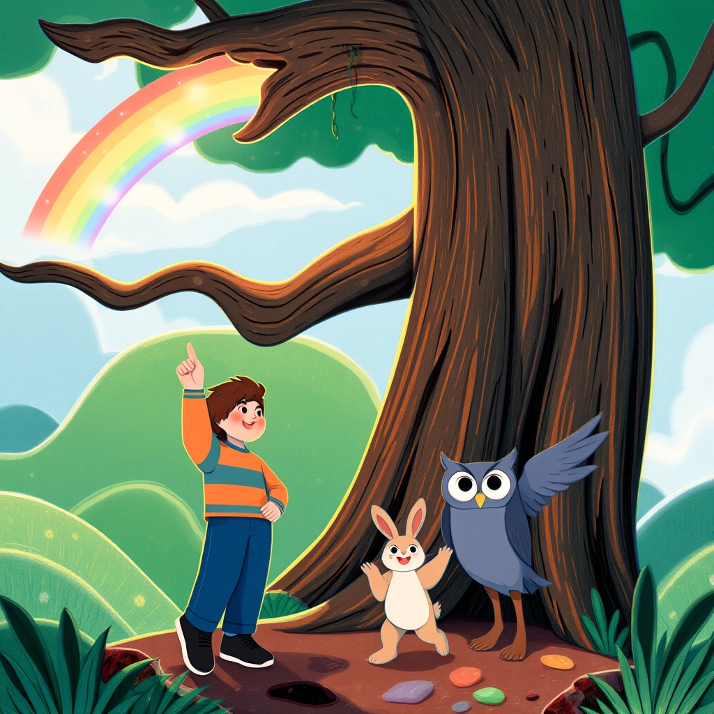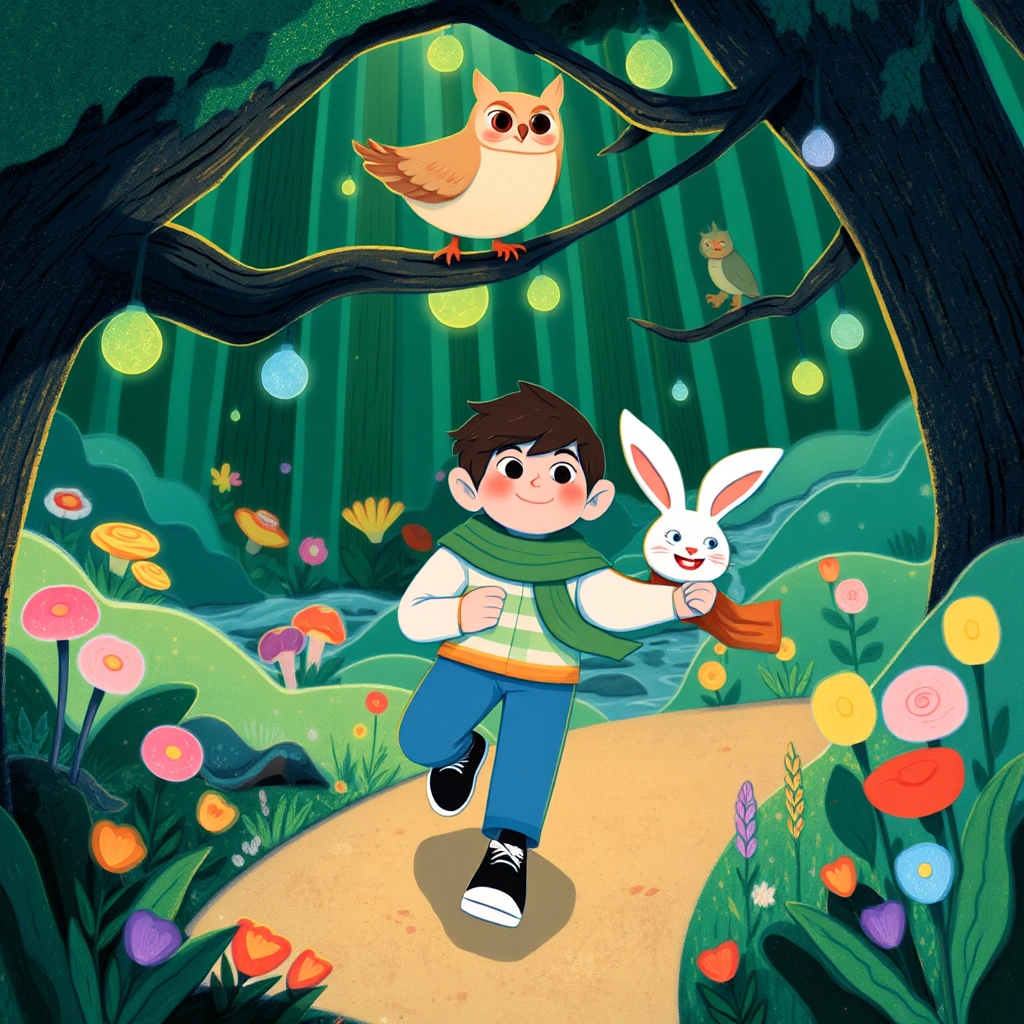 Evan teamed up with a cheerful rabbit and a gentle owl. Together, they solved riddles and followed clues left along the forest paths.