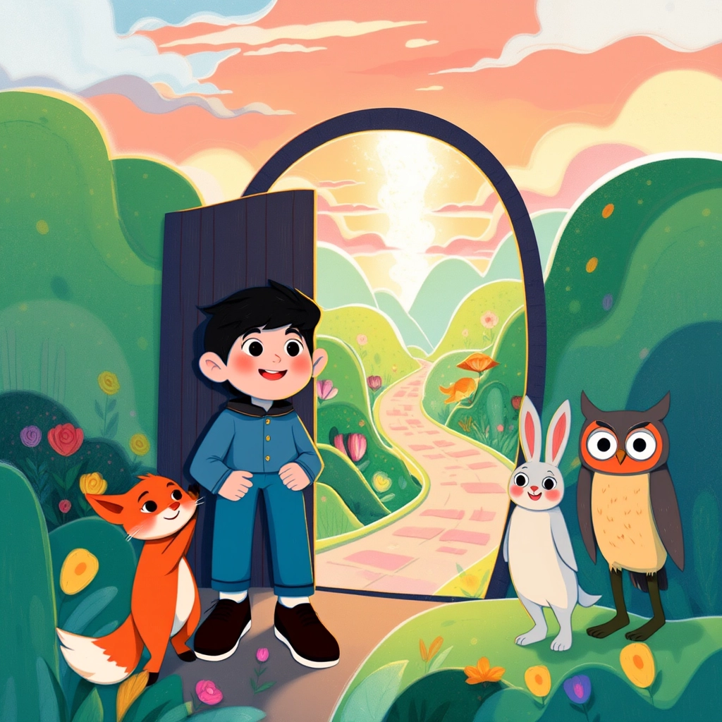 With a deep breath, Evan turned the key. The door creaked open, revealing a secret world filled with colorful, talking animals.