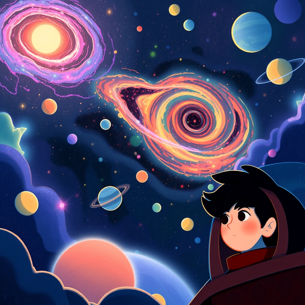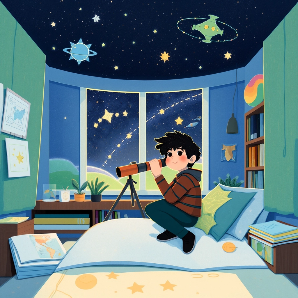 [Alae](LMRQHJ35) loved gazing at the night sky, wondering about the mysteries of the universe. Every night, he'd sit by his bedroom window with a telescope, dreaming of exploring stars, planets, and black holes.
