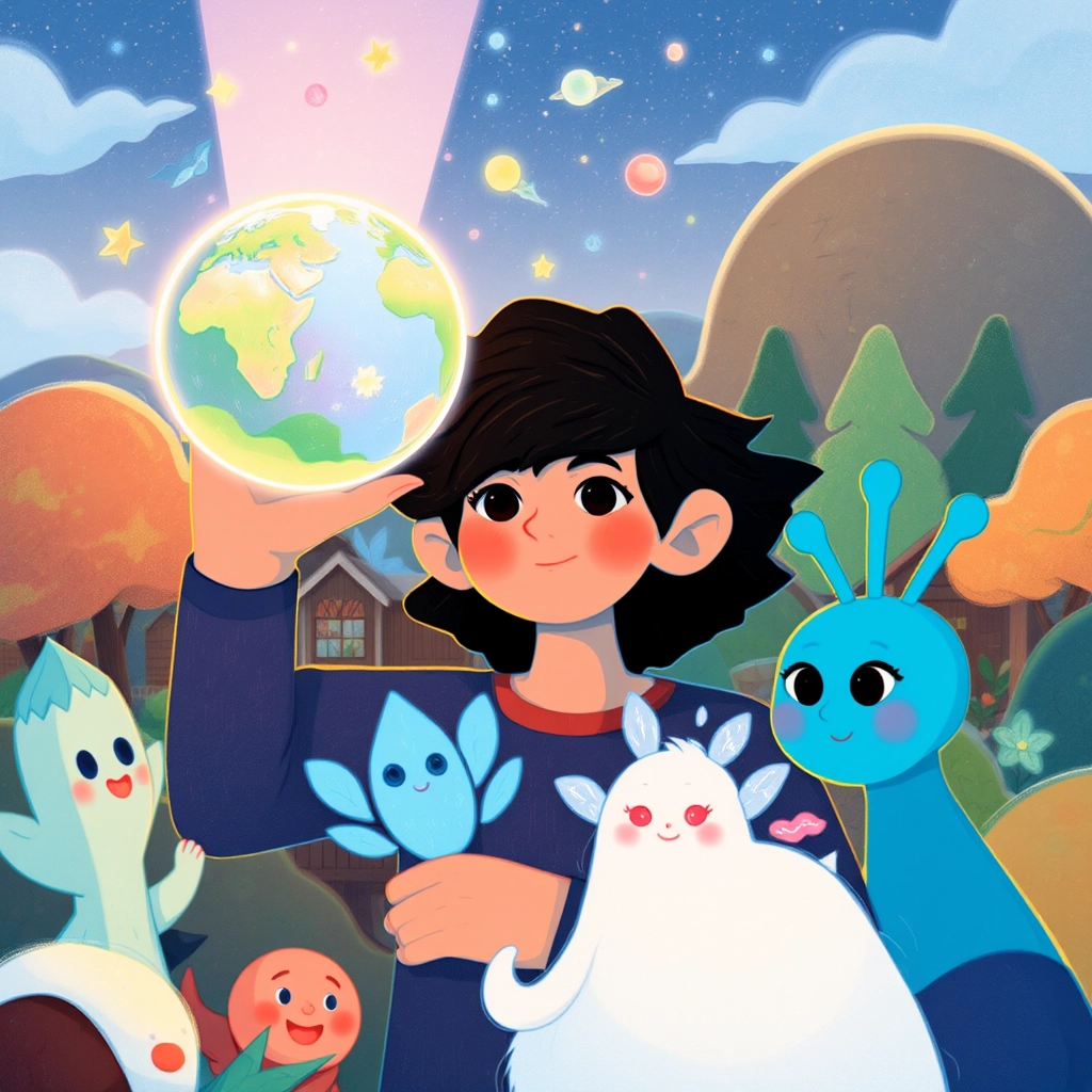 After many thrilling space adventures, [Alae](LMRQHJ35) returned to Earth with his new friends. They marveled at the blue skies, green trees, and endless wonders of the little, unique planet.