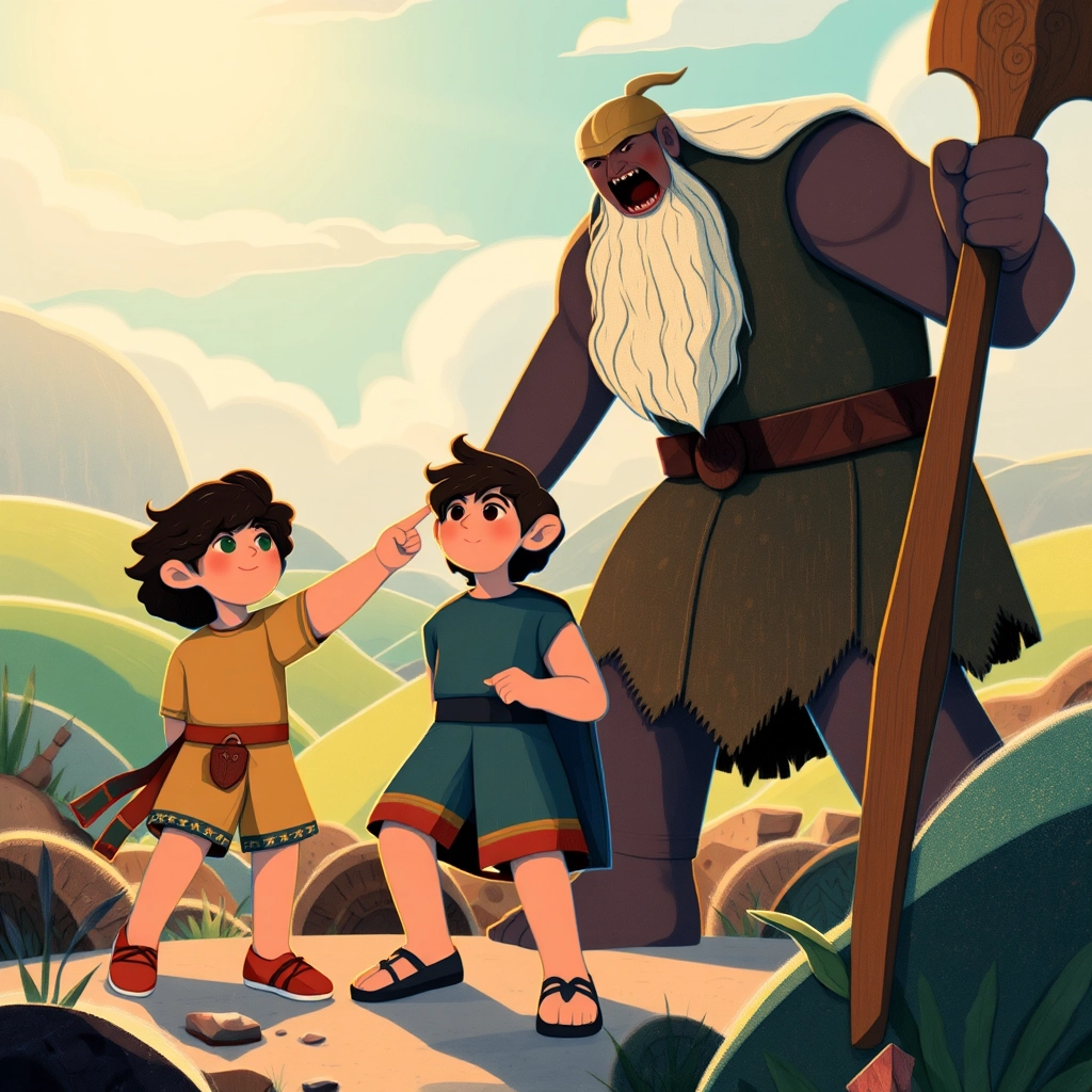 [David](K2YP73FJ) placed a stone into his sling, swung it around, and let it fly. The stone soared through the air and struck [Goliath](FFYFYS42) right in the forehead. The giant fell with a loud thud, silencing the battlefield.