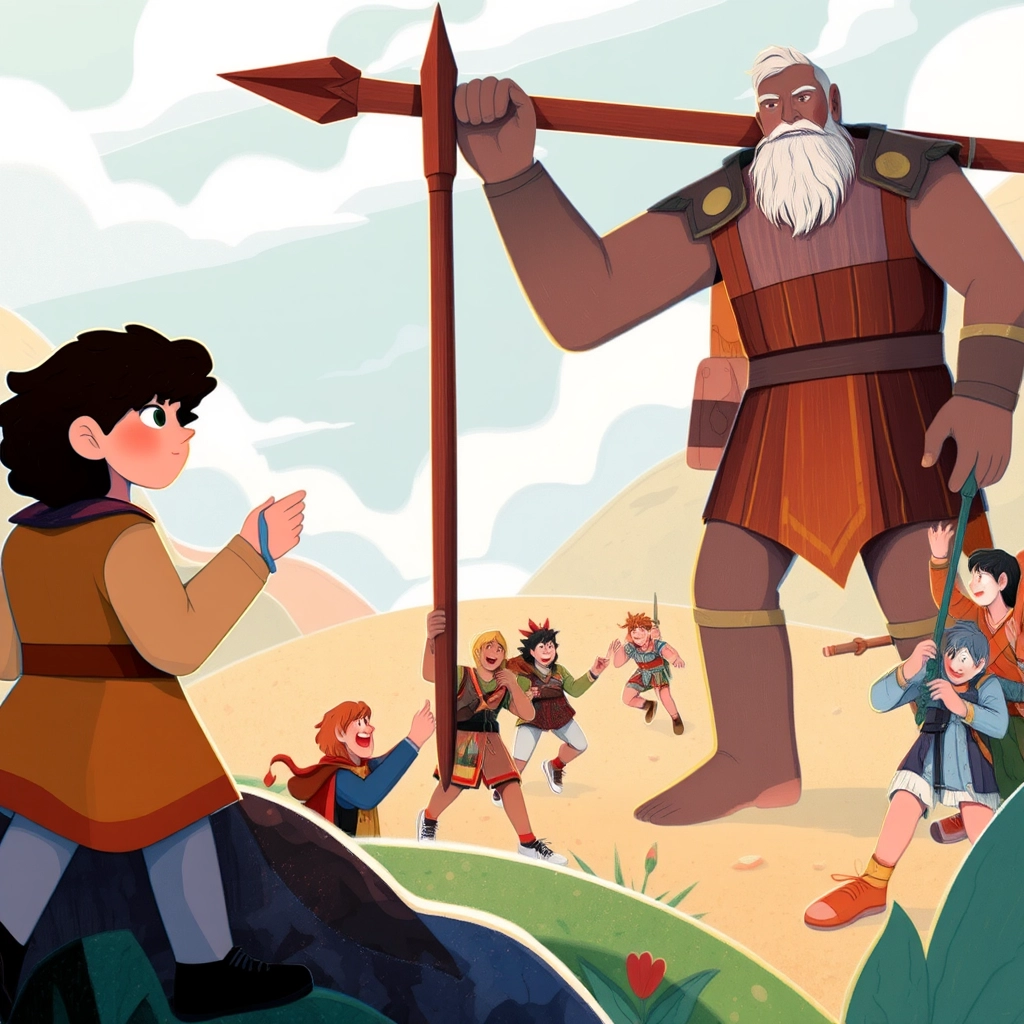 One day, [David](K2YP73FJ) visited his brothers at the battlefield where the Israelites were facing a giant enemy named [Goliath](FFYFYS42). [Goliath](FFYFYS42), wearing heavy armor, taunted the Israelites, making them tremble in fear. But [David](K2YP73FJ) wasn't afraid. He trusted that God was bigger than any giant.