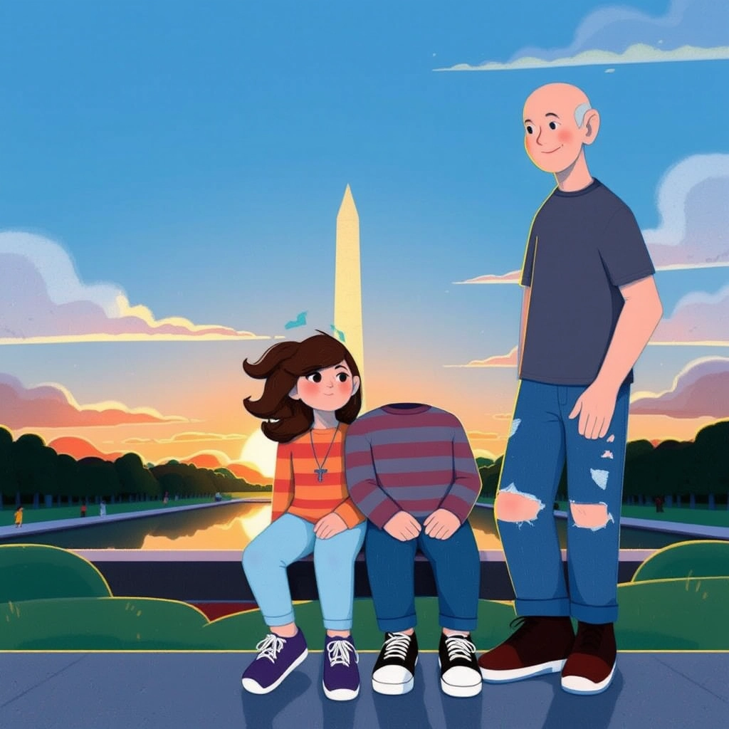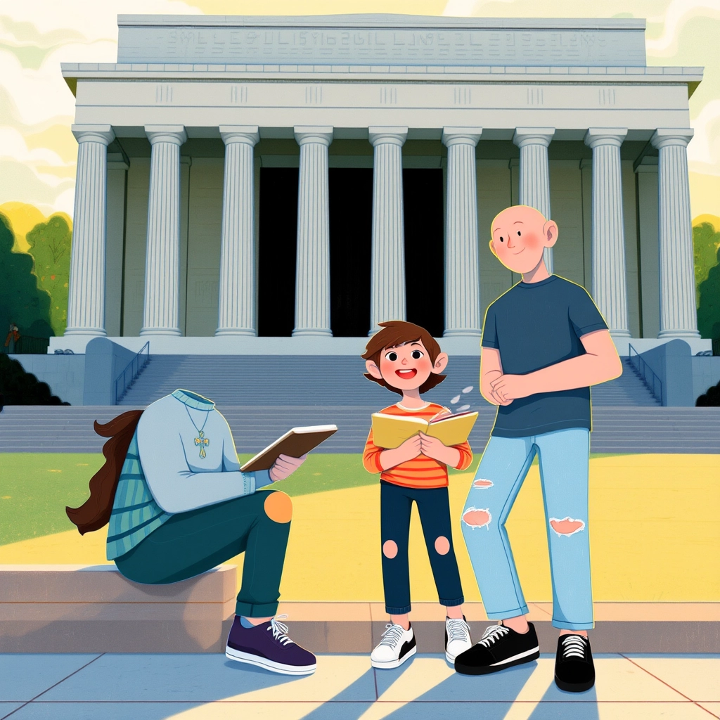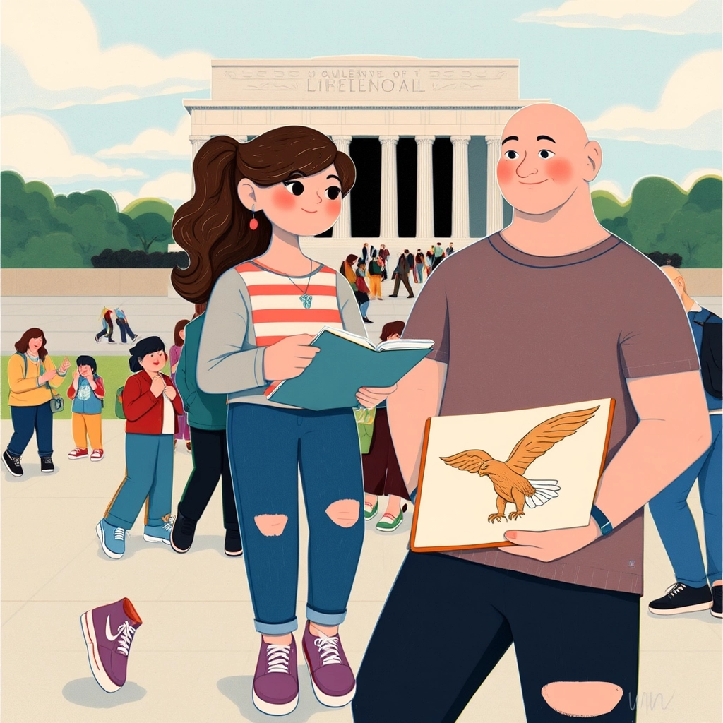 At the Lincoln Memorial, [Lynn](X7M7T6KC) saw a boy sketching a bald eagle. He had on torn blue jeans—it was [Sam](RYM2XZTX)!