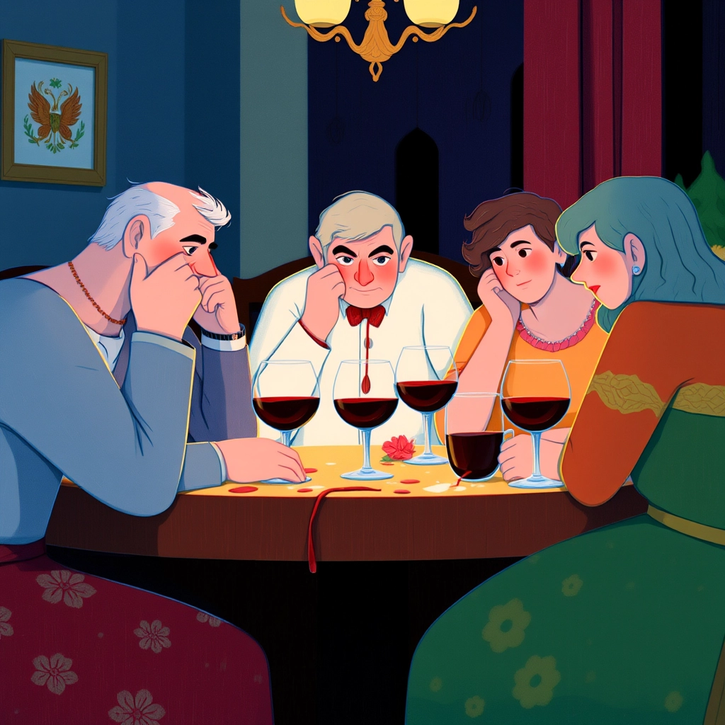 Everyone was having a wonderful time until a problem arose. They ran out of wine, and the guests began to whisper worriedly.