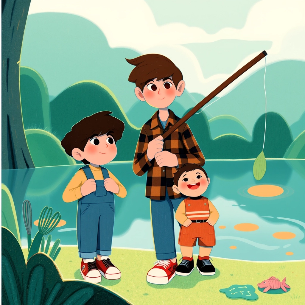 [Major](P2WJH679), [Marlo](JBHDL97D)’s big brother, sat next to him concentrating hard. [Major](P2WJH679) really loved fishing, though he sometimes got grumpy if the fish didn’t bite.