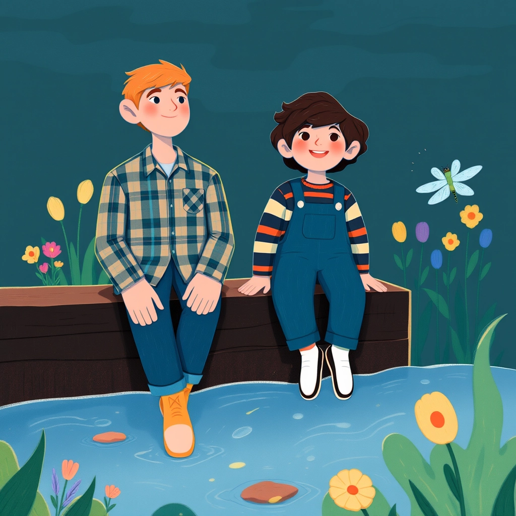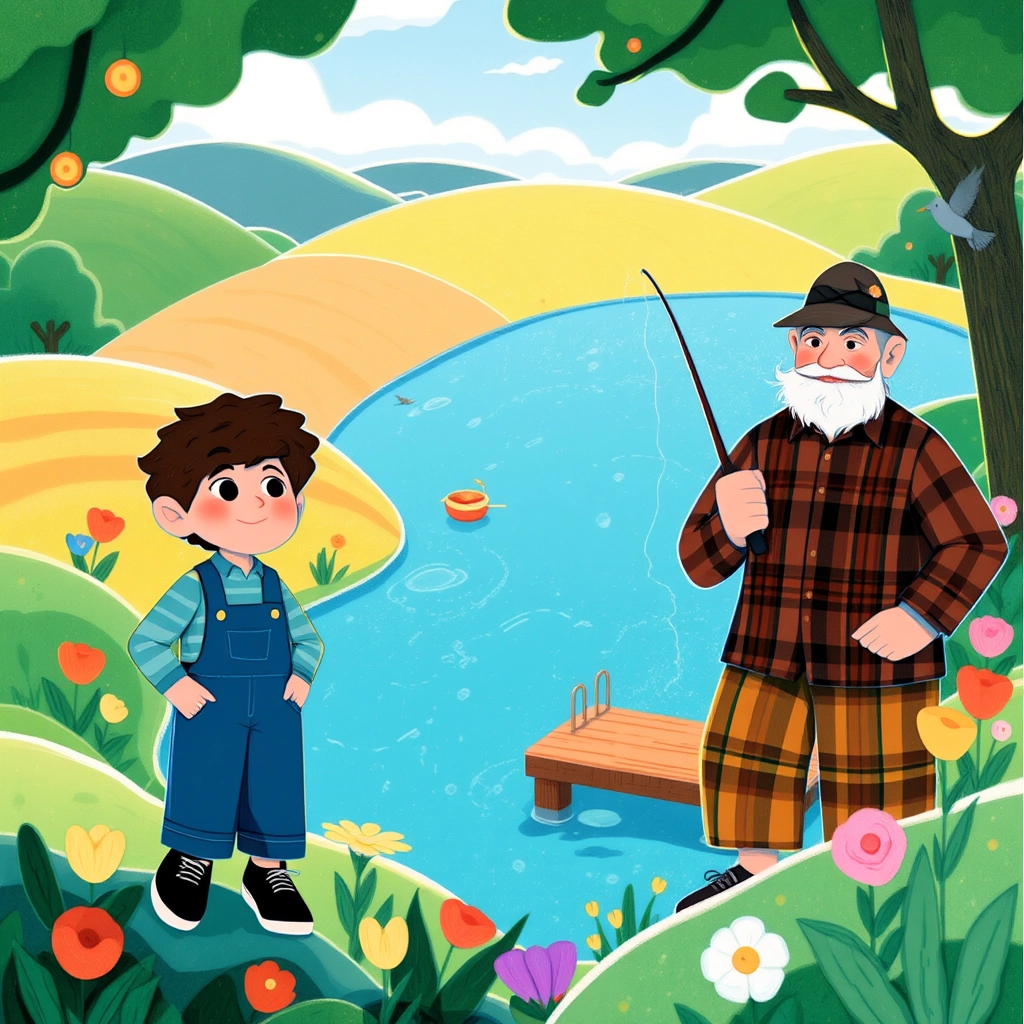 [Marlo](JBHDL97D) loved spending weekends at [Pawpaw](LS3N55DR)’s country pond. The air smelled of fresh grass and wildflowers, and the pond sparkled under the big bright sun.