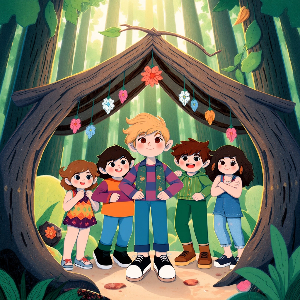 One day, [Frank](3XQ4CPPG) and his cousins built an amazing fort out of sticks and leaves. It became their secret headquarters for the rest of the trip!