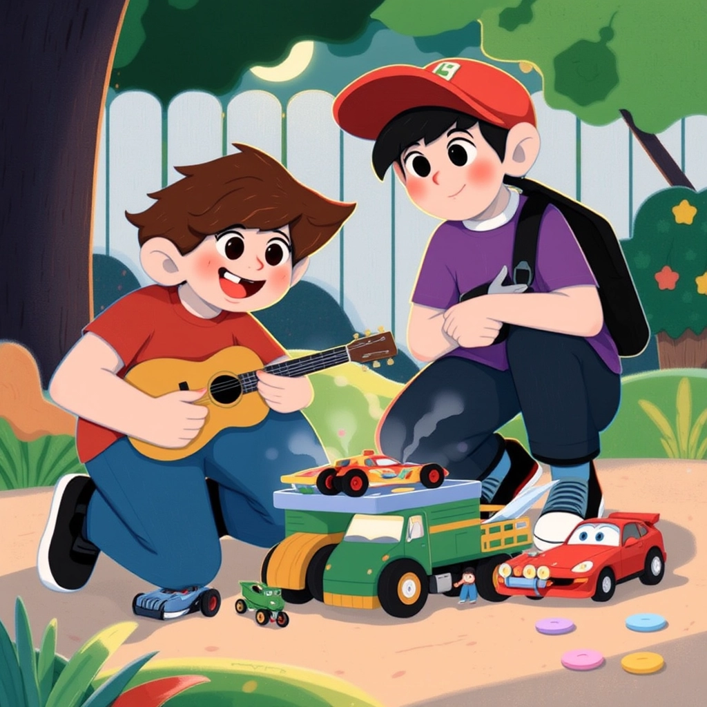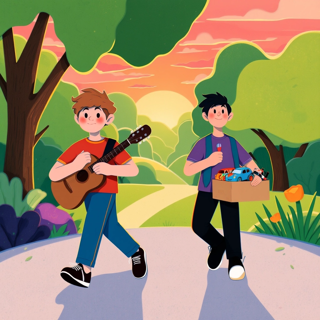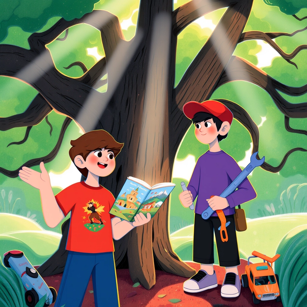 One sunny morning, [Daniel](6KW49ZY5) and [Tom](K6J9SNPX) decided to spend the day at their local park. They had different ideas about fun but loved spending time together.