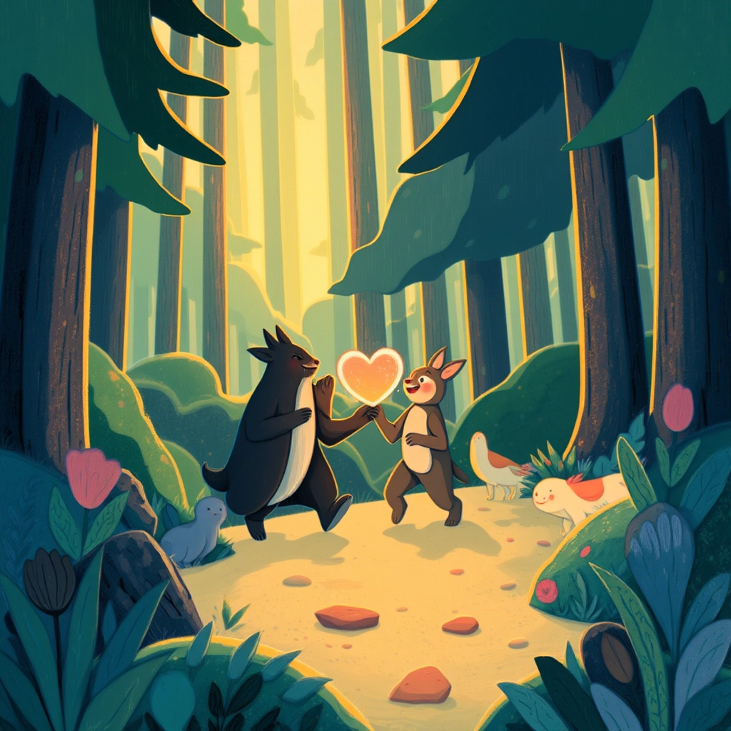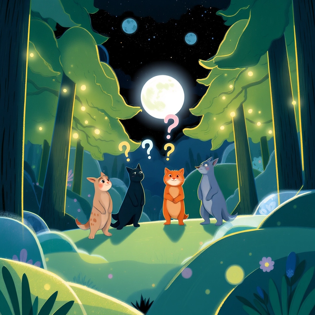 Finally, they approached the treasure’s hiding place — the ‘Glade of Whispers.’ Soft, mysterious voices asked riddles about friendship and courage. Each animal answered a riddle using their unique gifts, proving the strength of their bond.