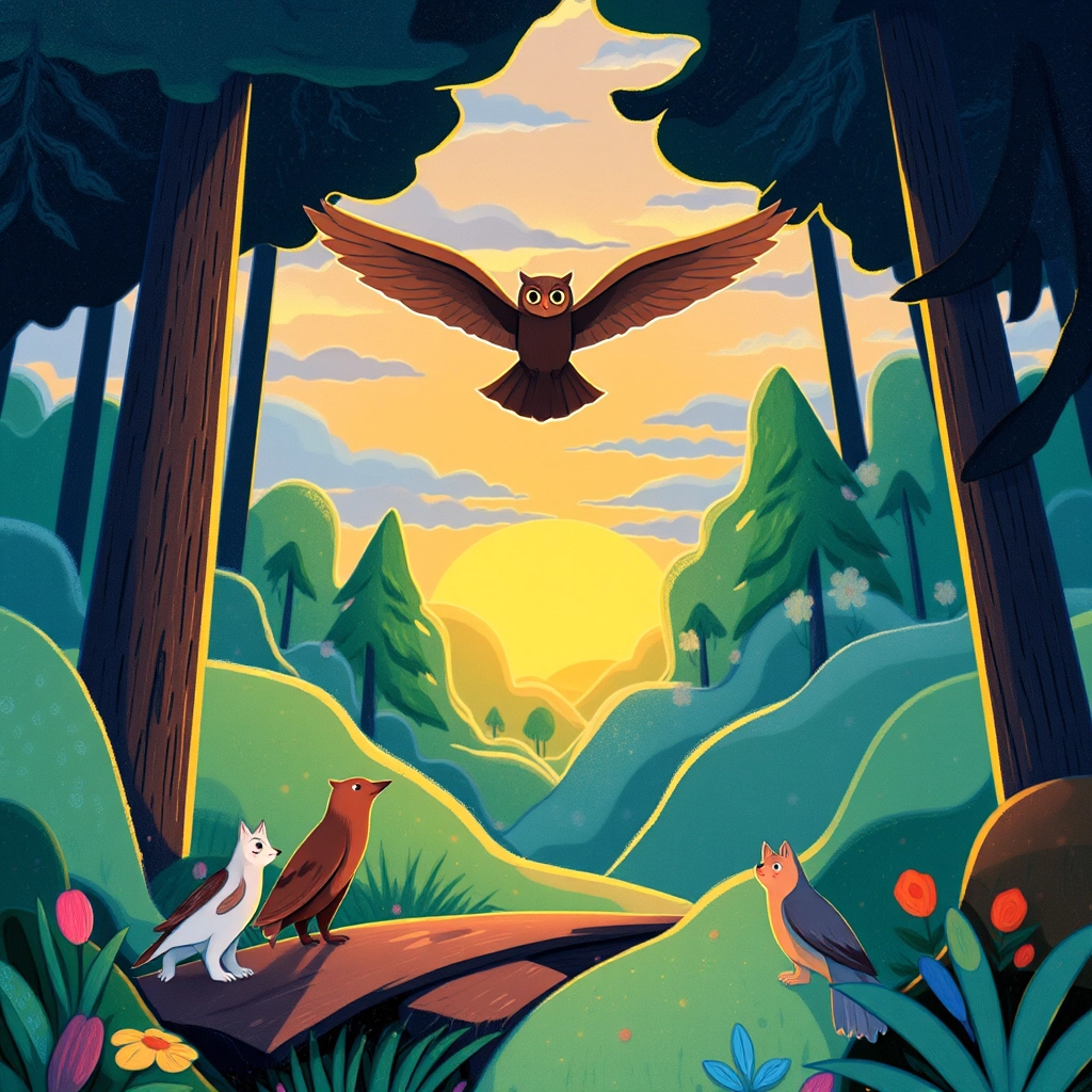As they ventured deeper, they reached a fork in the path with ominous signs. Lila flew up to get a bird’s-eye view and used her wisdom to guide them down the correct trail, saving them from a treacherous mistake.