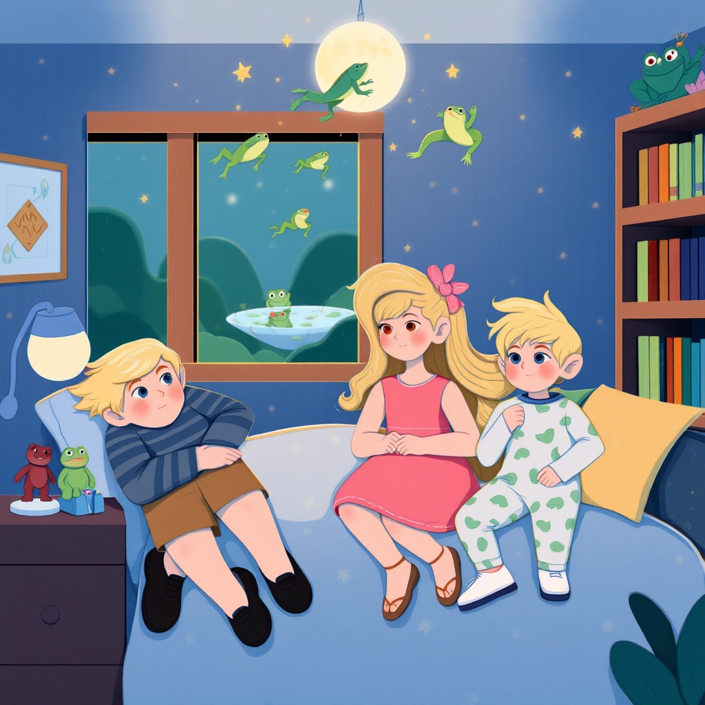 That night, [Henry](YT2MWV2R), [Lily](ZDJRR9DC), and [Max](ZYDM7Z6G) dreamed of frogs leaping across magical moonlit ponds. It had been a perfect day for froggy adventures!