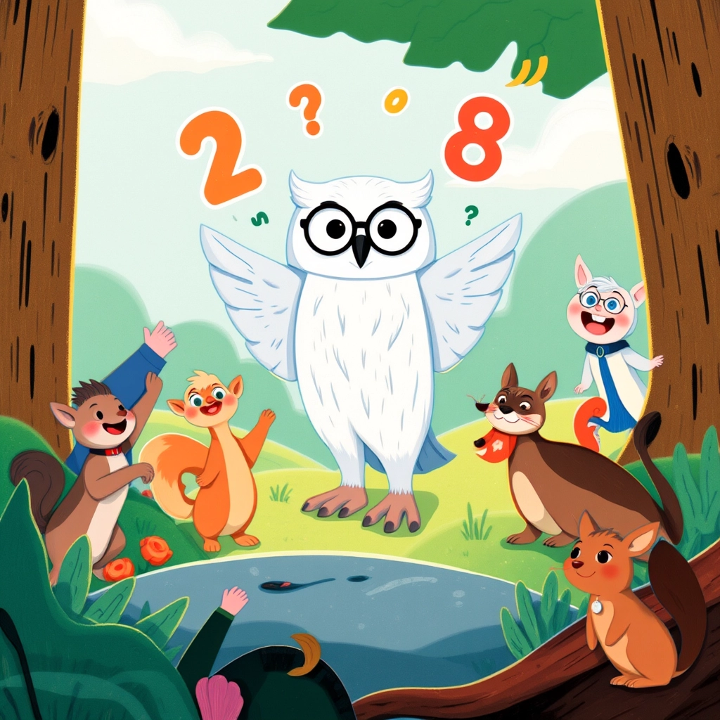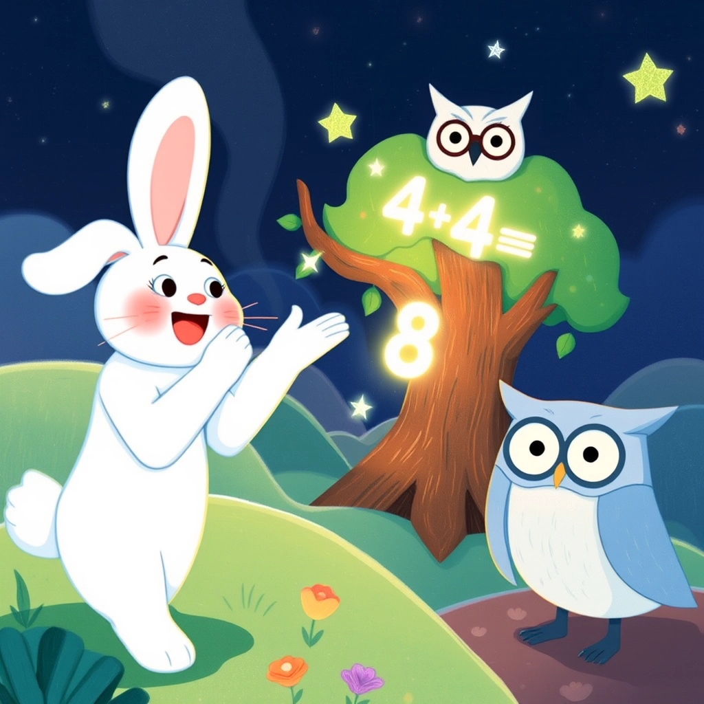 'Doubles are like twins!' said [Dr. Owl](LNBBKBJC). Bella clapped her paws, 'Four plus four is eight!' The tree rewarded her answer with twinkling music and more glowing numbers.