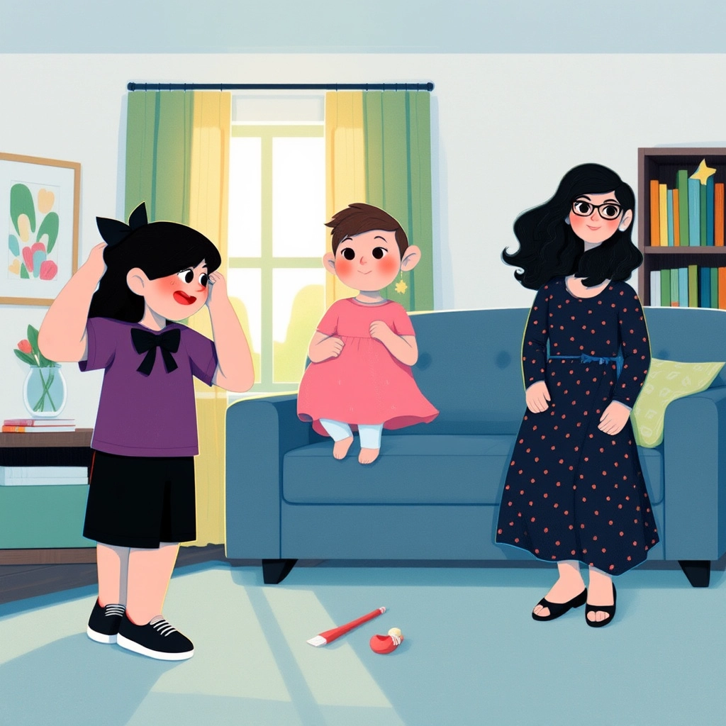 [Mama](YBRJPD52) walked in and knelt beside them. "[Ofelia](GVTZ4G3H)," she said gently, "[Ingrid](DK39PDS9) doesn’t know how to play nicely yet. She’s still learning. Can you show her with your gentle hands?"