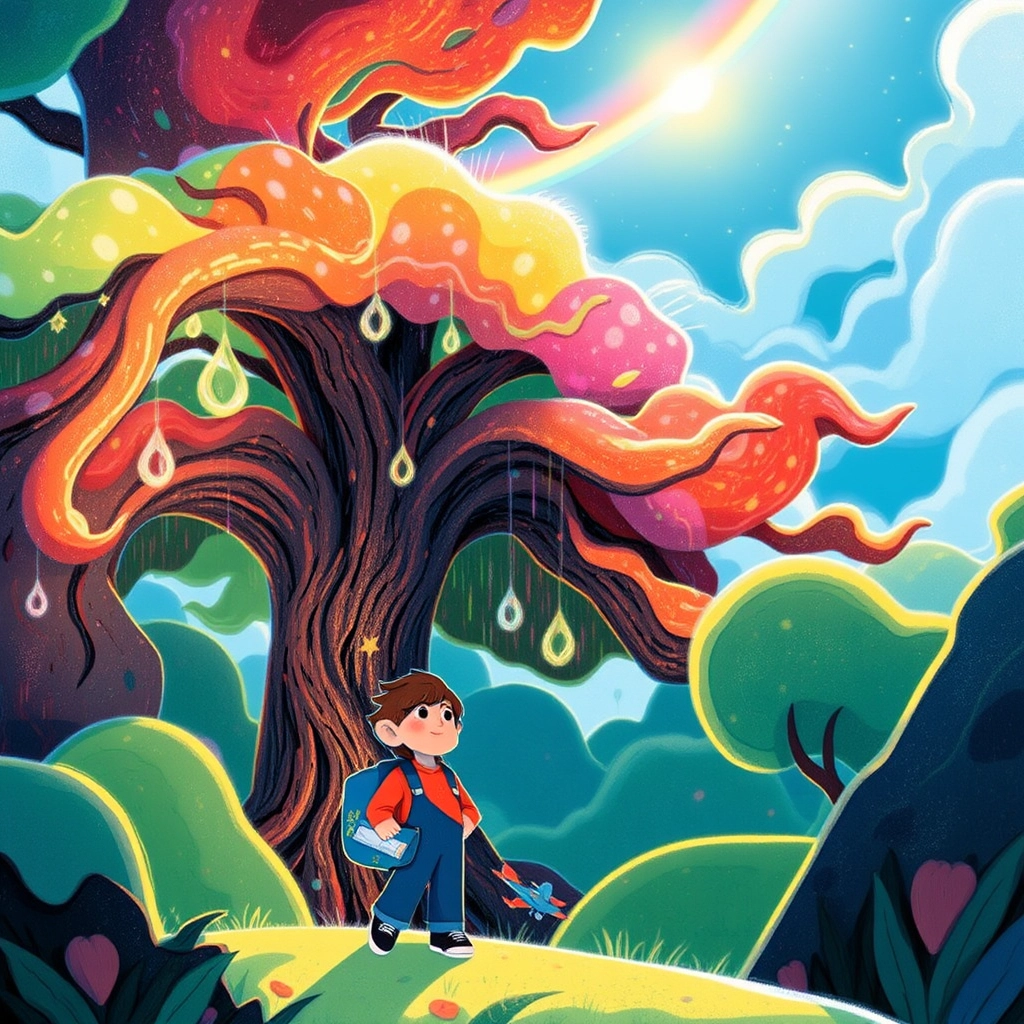 After walking for a while, [George](9K6PTK3V) saw the Rainbow Tree! It was tall, shimmering, and had branches of every color.