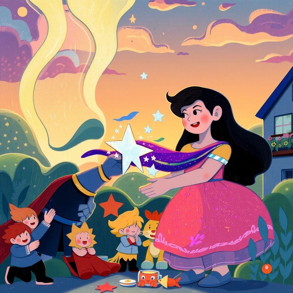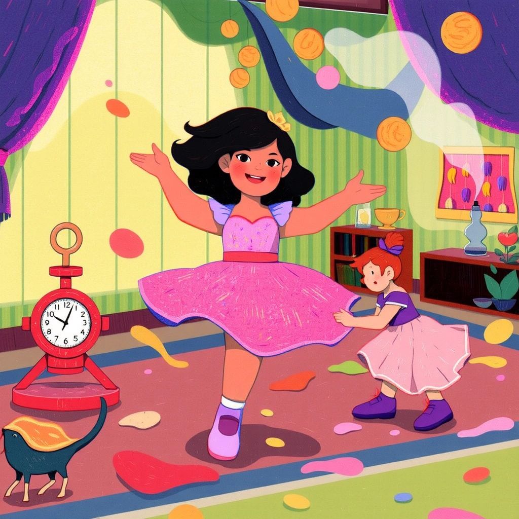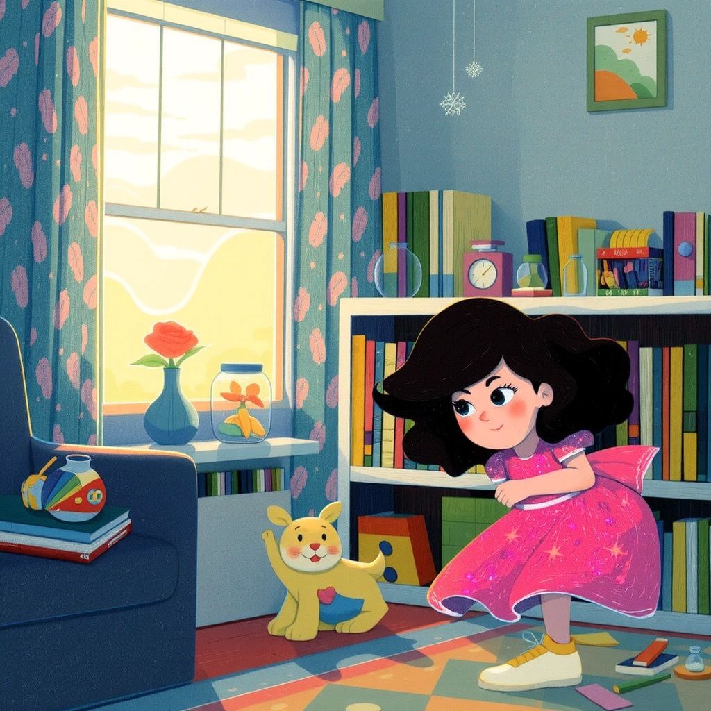 One sunny morning, [Georgie](P2T9V4PV), a joyful 5-year-old with sparkling black hair and a pink princess dress, found herself drawn to a shimmering light peeking from behind her toy shelf.