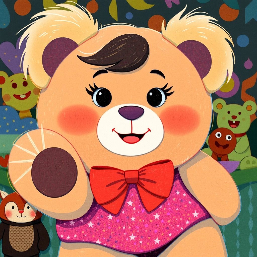 A friendly teddy bear named Benny approached [Georgie](P2T9V4PV) and said, 'Welcome to Toyland! We have so many adventures to share with you!'