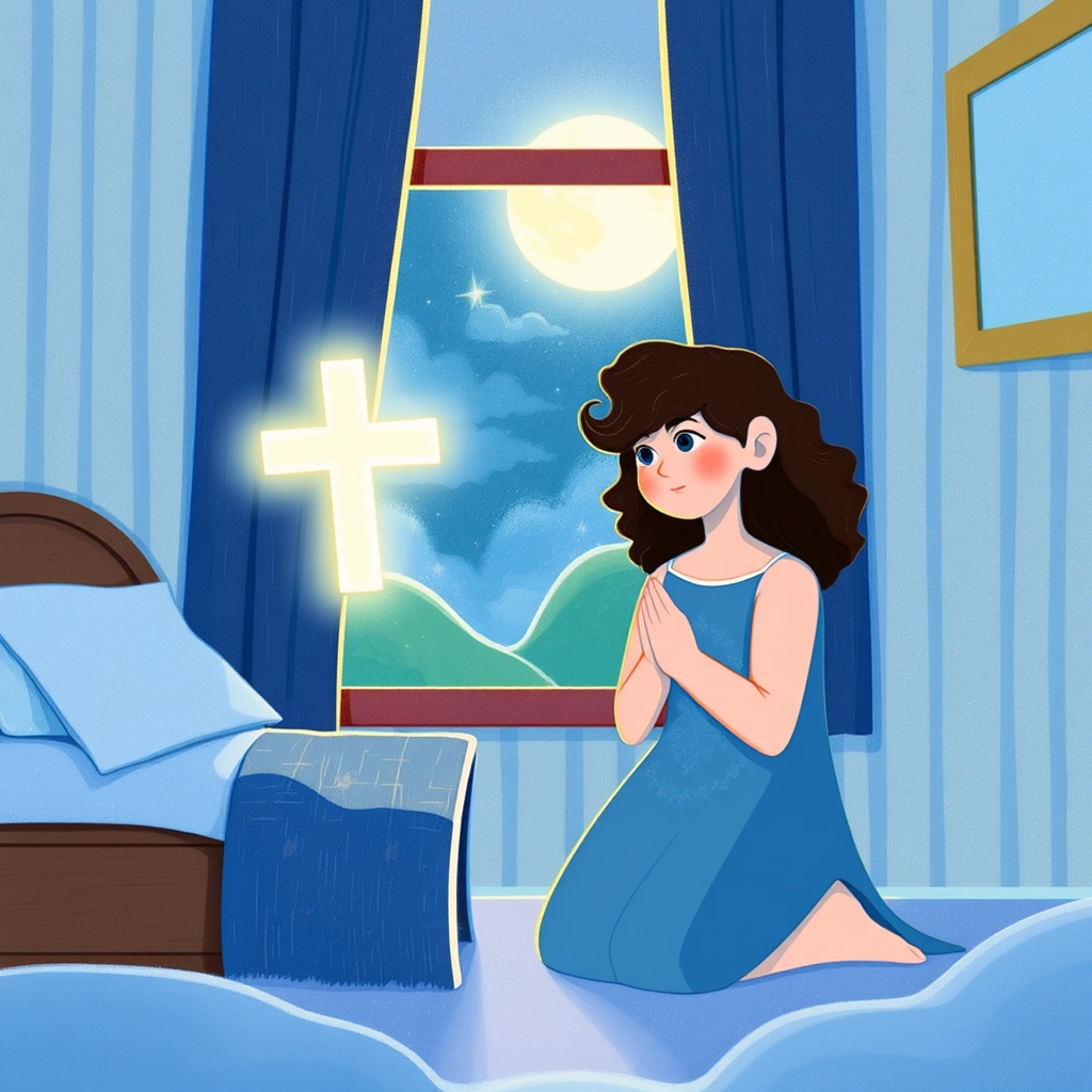 One evening, [Grace](DJTMRPXK) prayed. 'Thank you, Lord, for showing me how to share my gift. Let my songs bring glory to Your name.' Her prayer came from the heart, and she felt a wonderful peace.