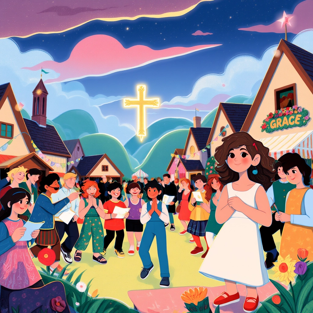 [Grace](DJTMRPXK) learned an important lesson: talents are God’s gifts, meant to be used for His glory and to help others. 'We are God’s instruments,' she told the children, 'Let’s play our parts beautifully!' And the town echoed: 'Amen!'