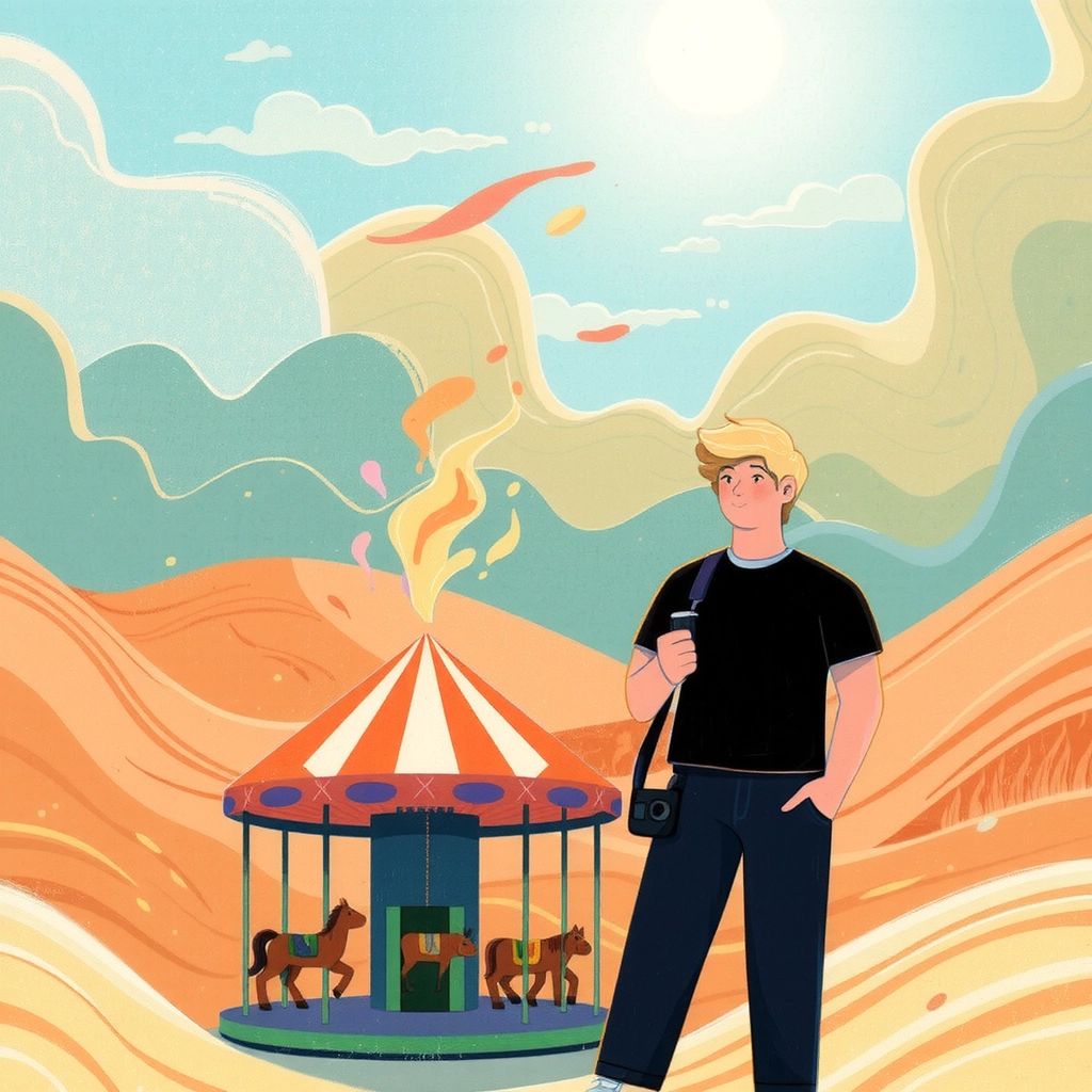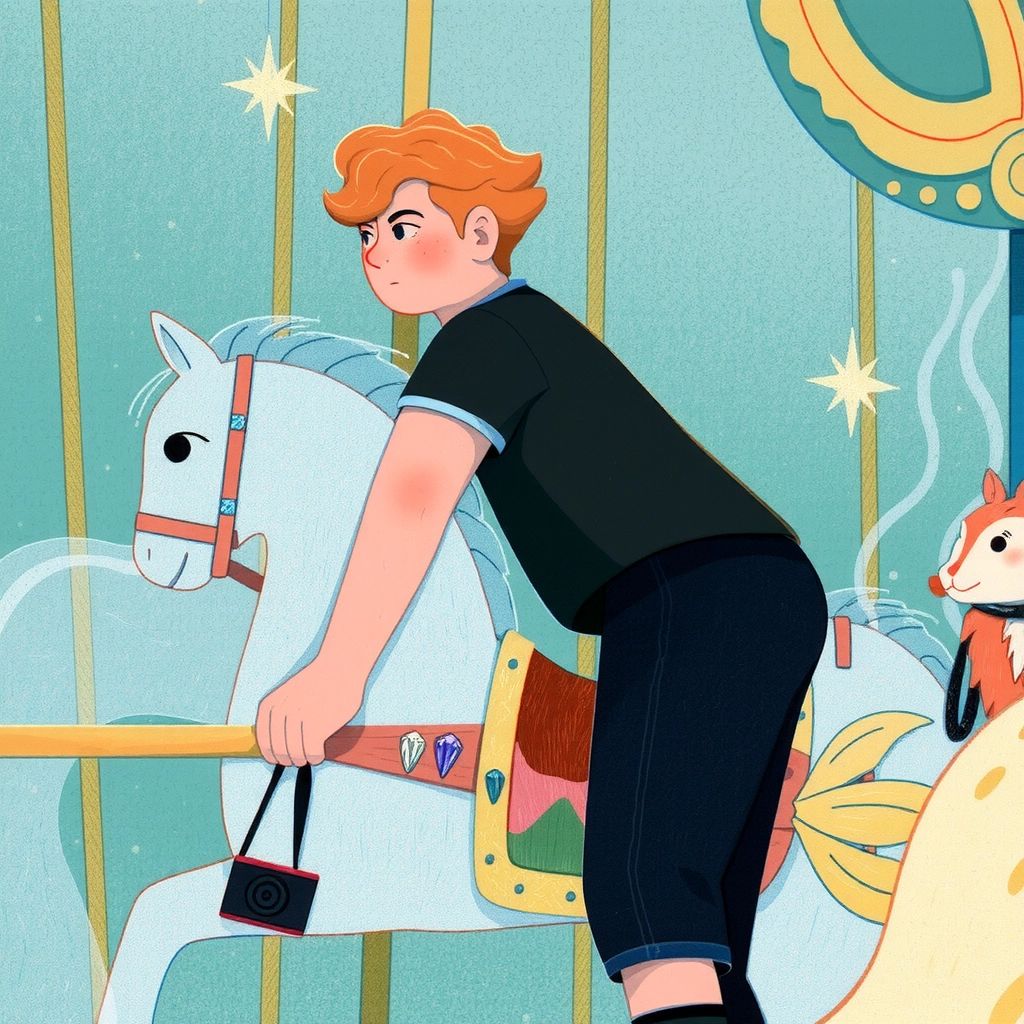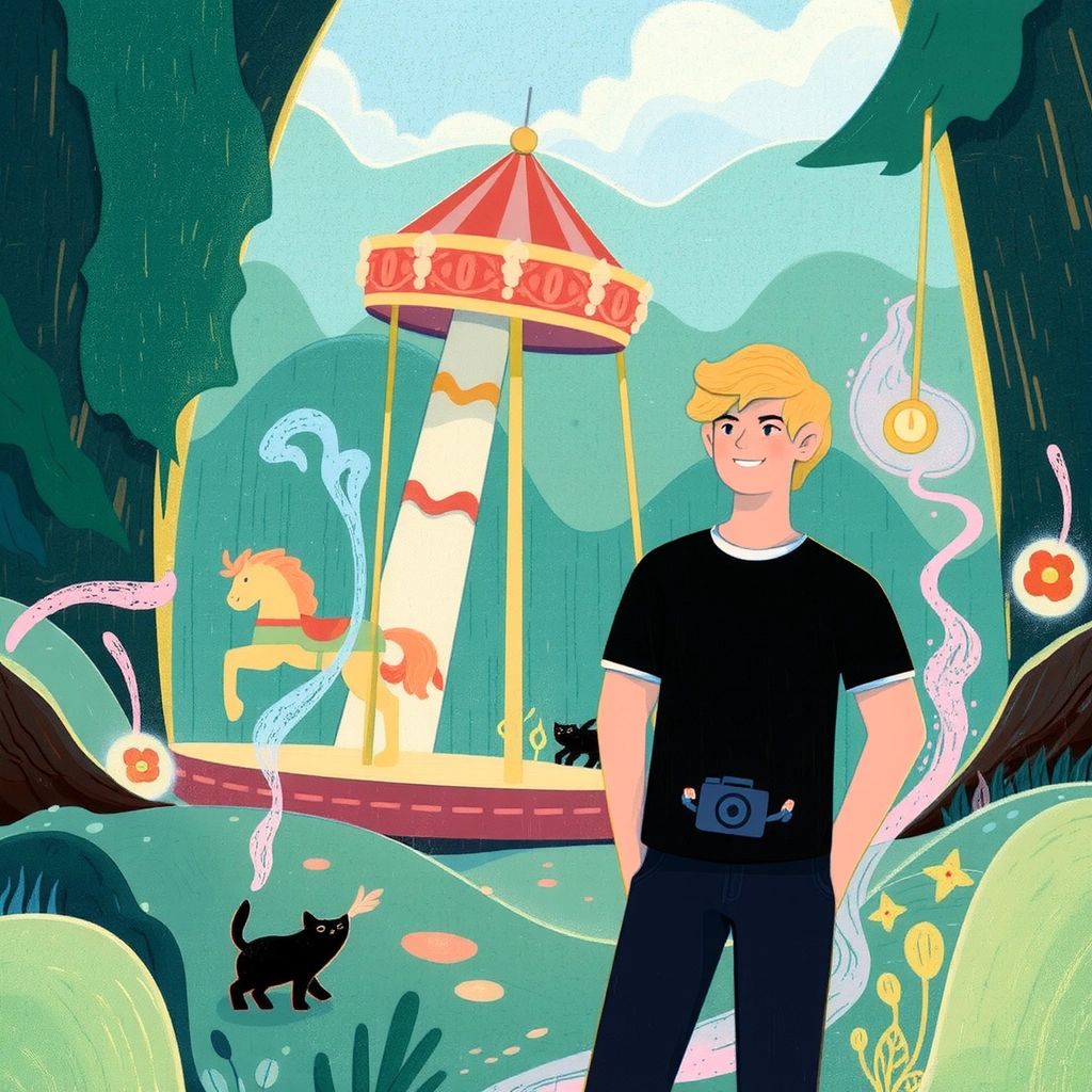 [Giosue](PRBLCT2Q) had always loved adventures. With his trusty camera in hand, he found himself wandering into an ancient forest one summer afternoon. As he walked deeper, he stumbled upon a hidden clearing where the most magnificent carousel he had ever seen stood, glimmering in the sunlight.